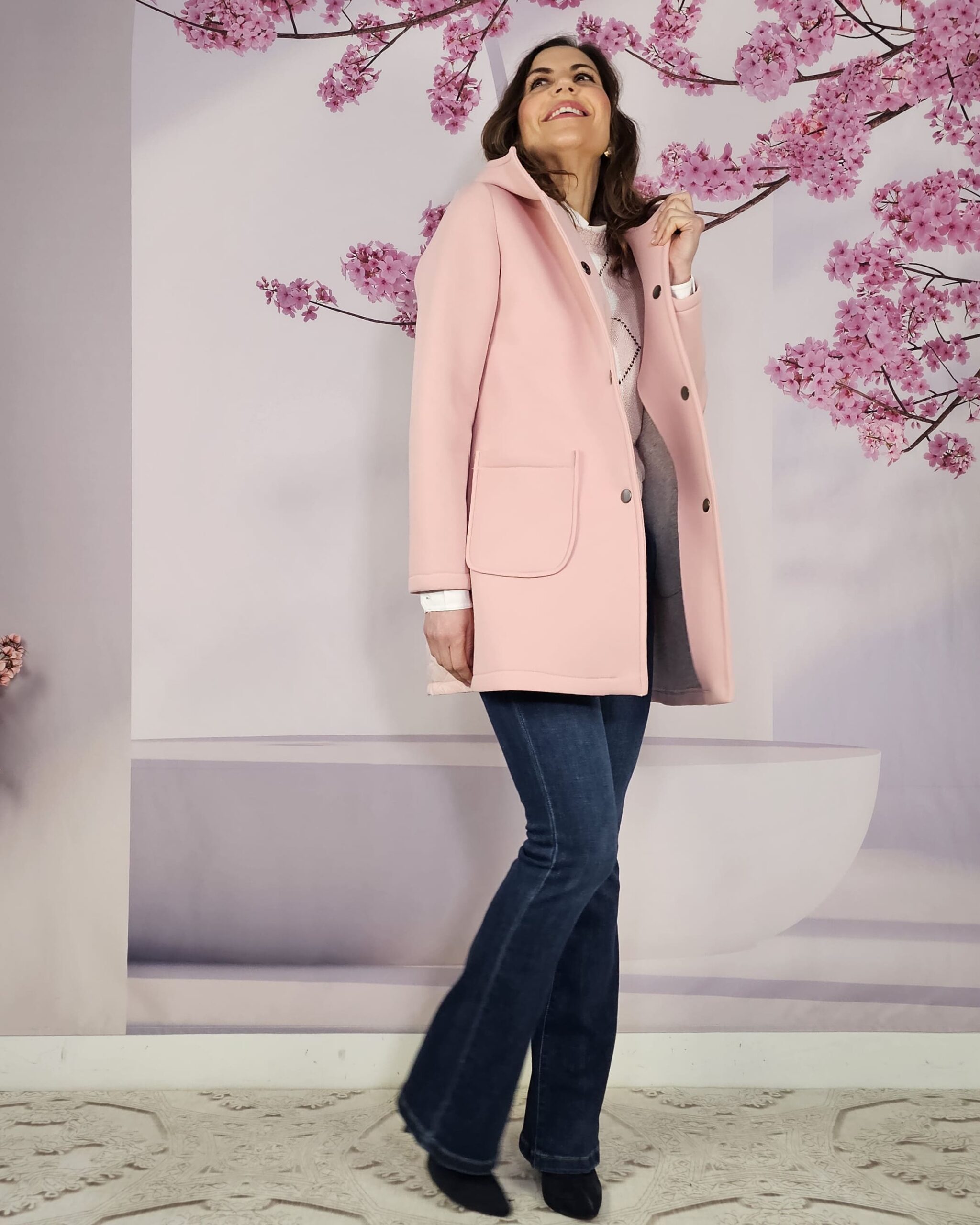 El abrigo ideal para llevar a diario, tejido con empaque, con un diseño muy college, capucha y cierre con corchete.
