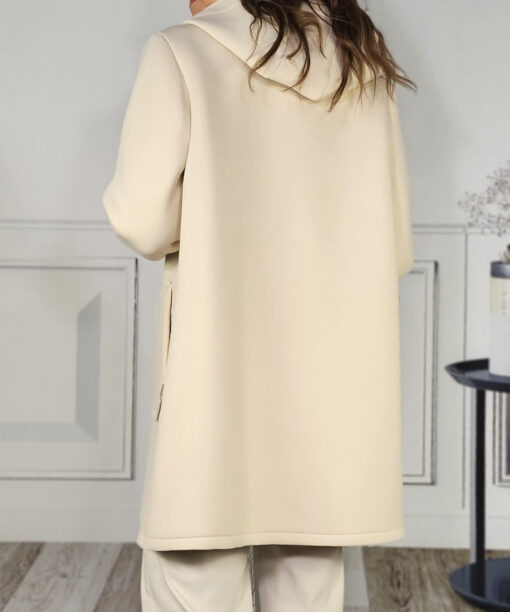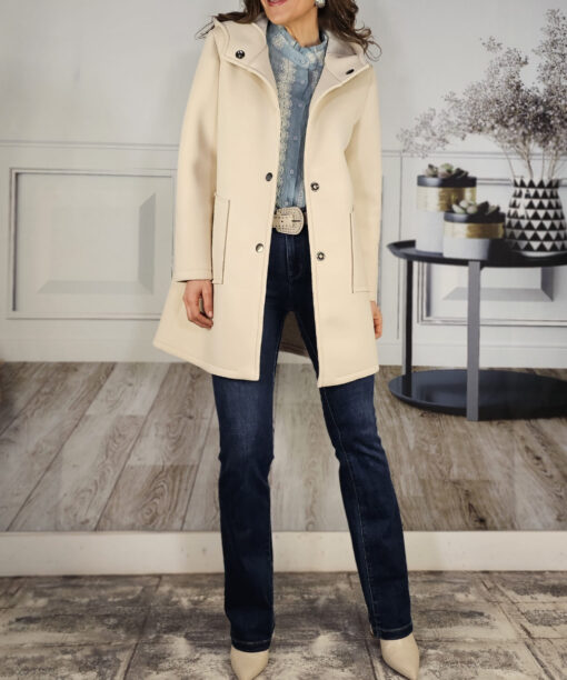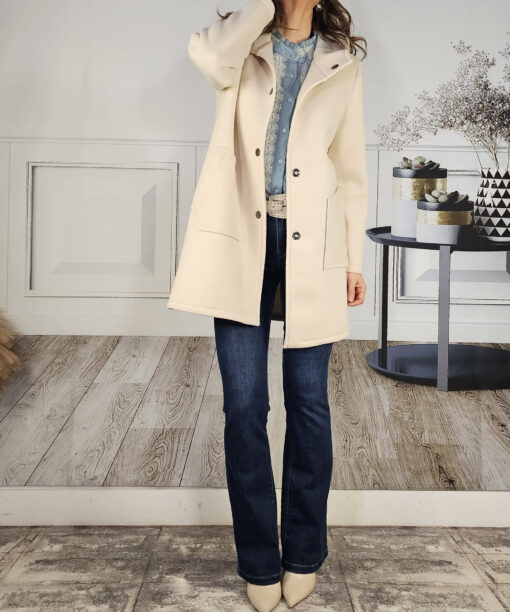 El abrigo ideal para llevar a diario, tejido con empaque, con un diseño muy college, capucha y cierre con corchete.