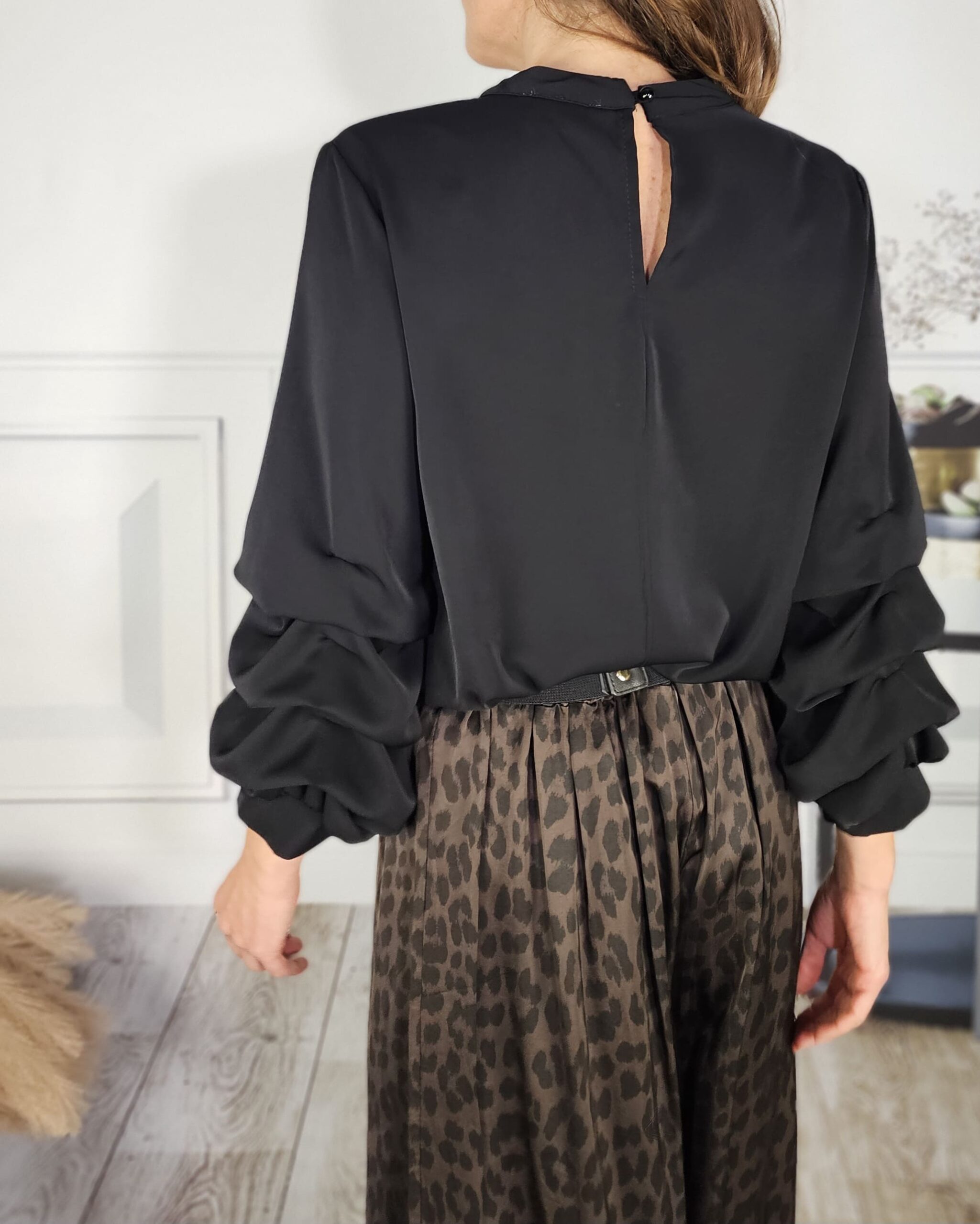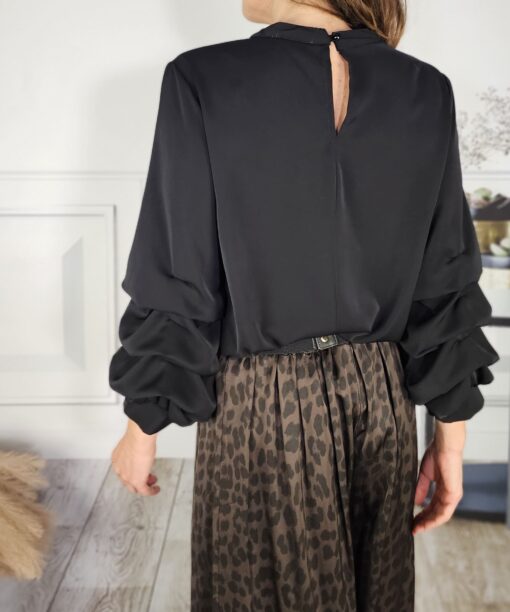 Una blusa fluida, gustosa a más no poder…con las mangas tal cuál las ves…cosidas en forma de volantón.