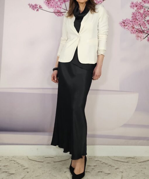 De noche con una falda de raso negra como Miska o con un pantalón negro de vestir…un top diferente y poco visto.