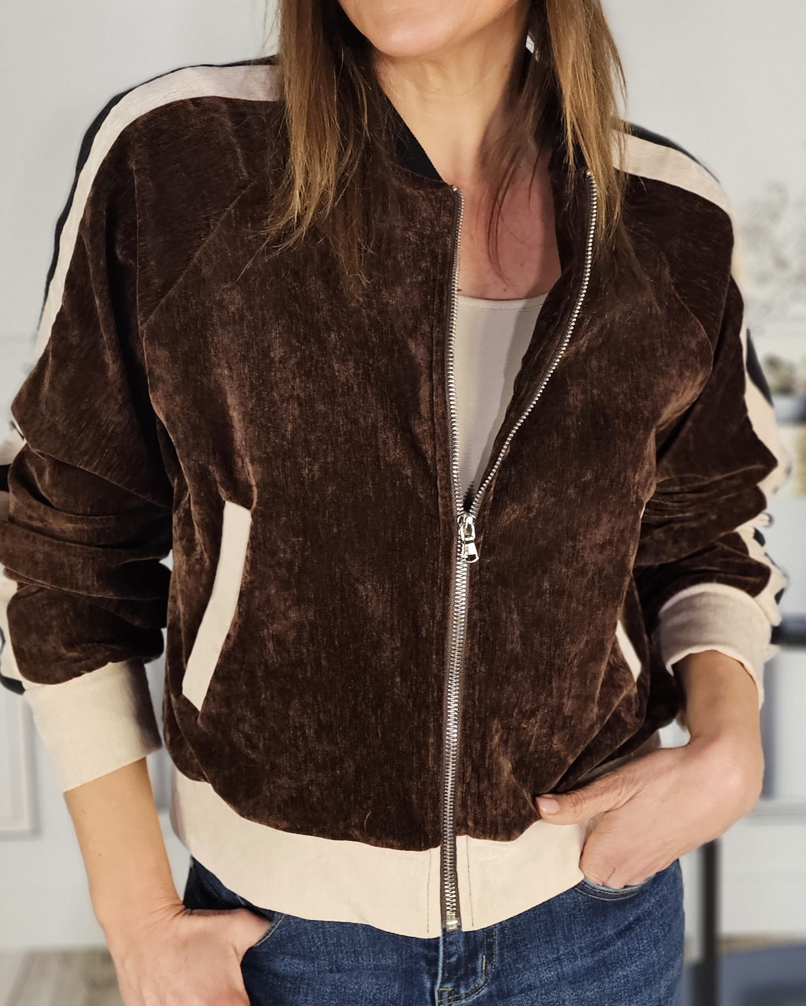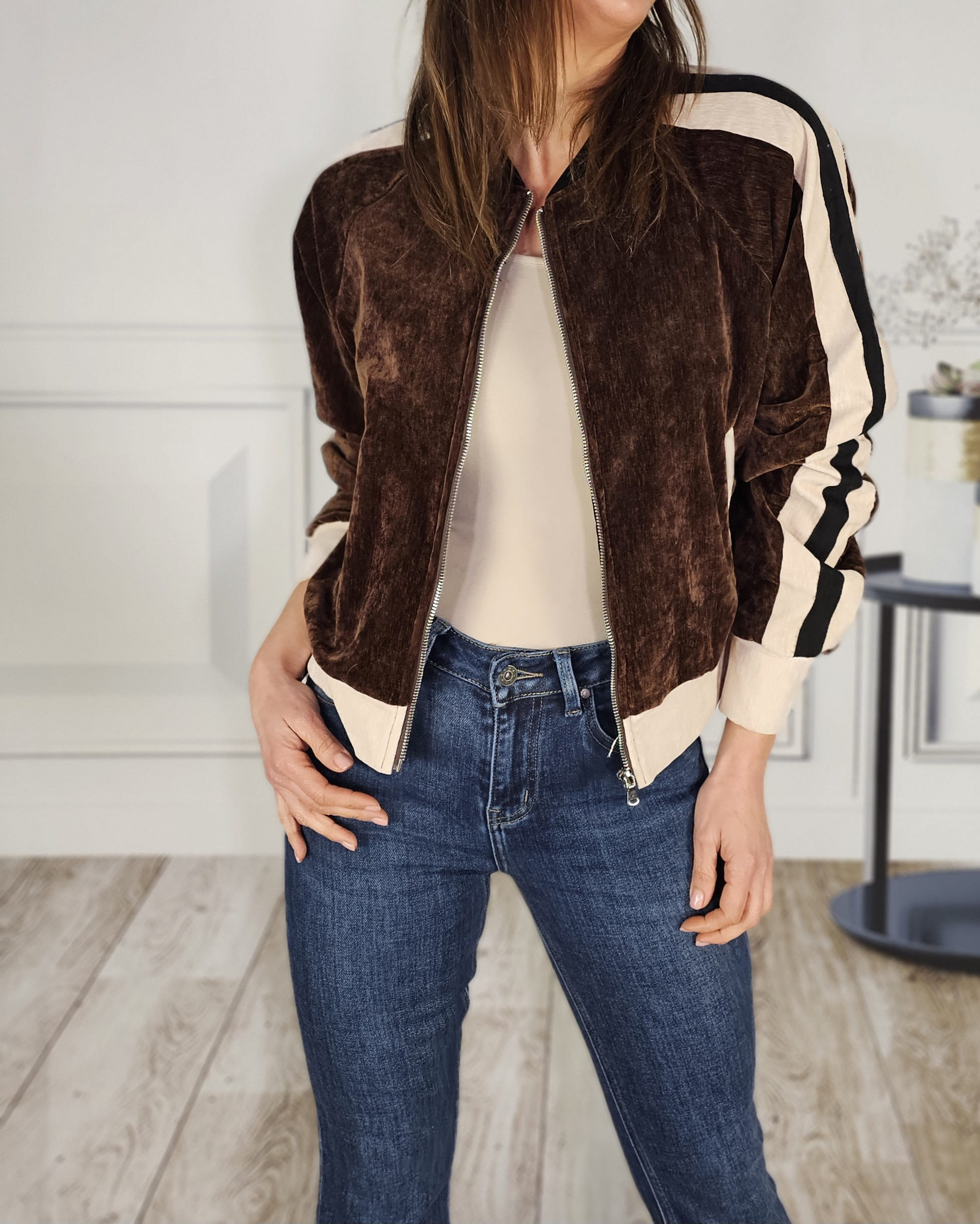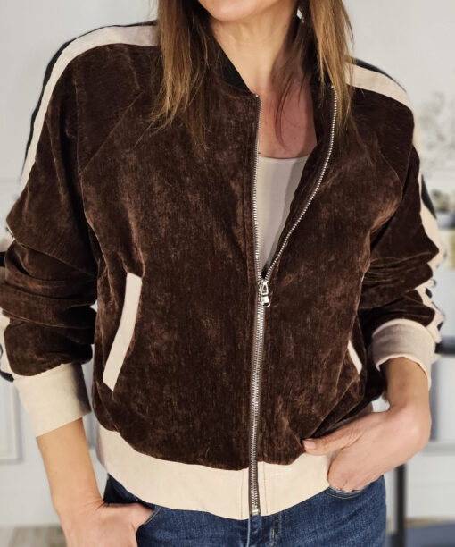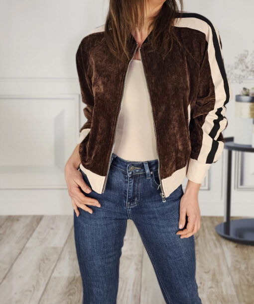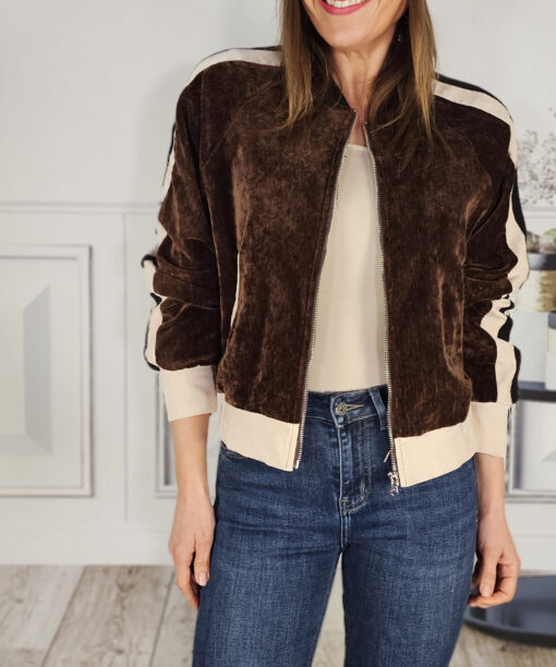 Una bomber de terciopelo -forrada en su totalidad- que queda de muerte. Con el Vaquero martina haces un conjunto sport-chic precioso.