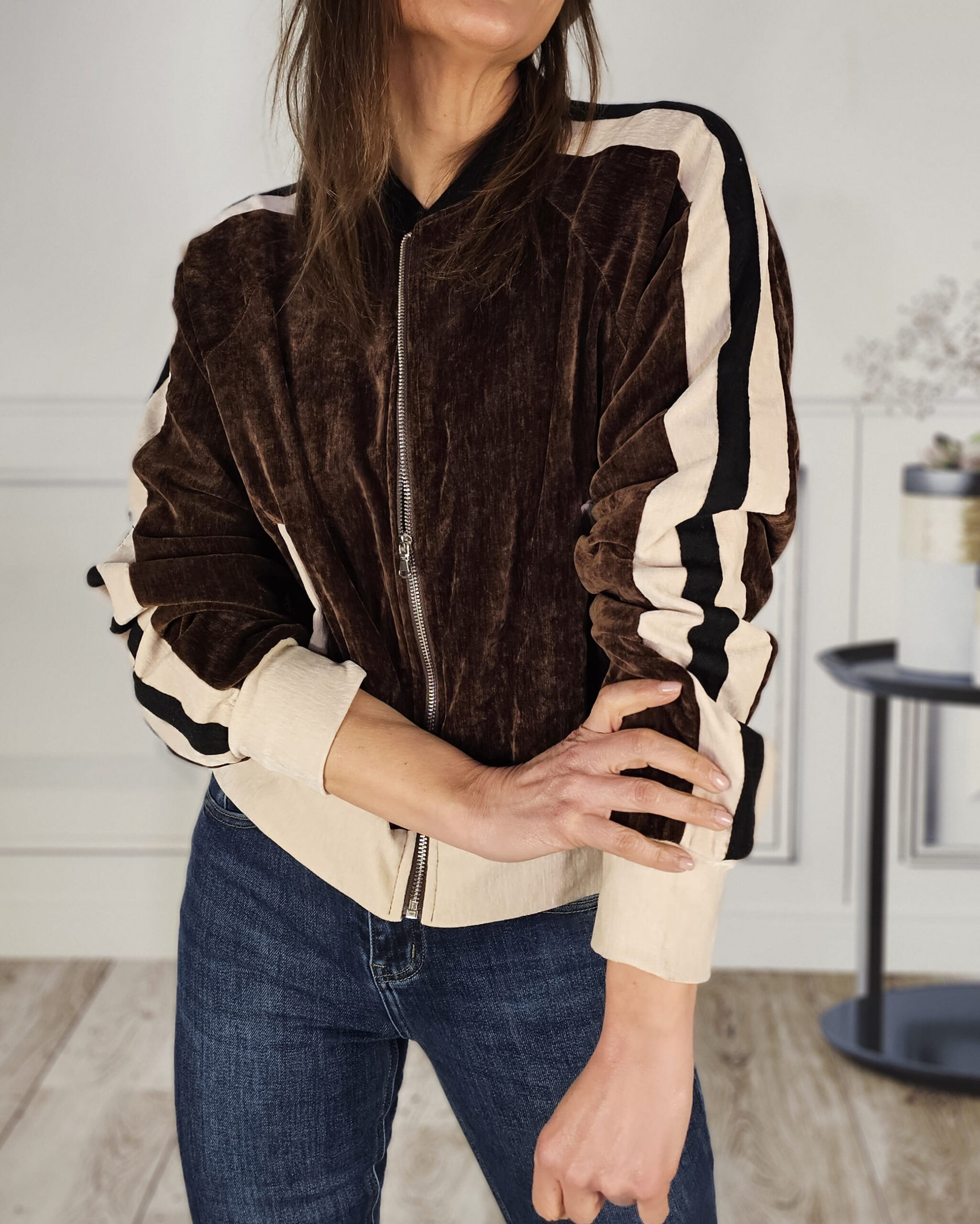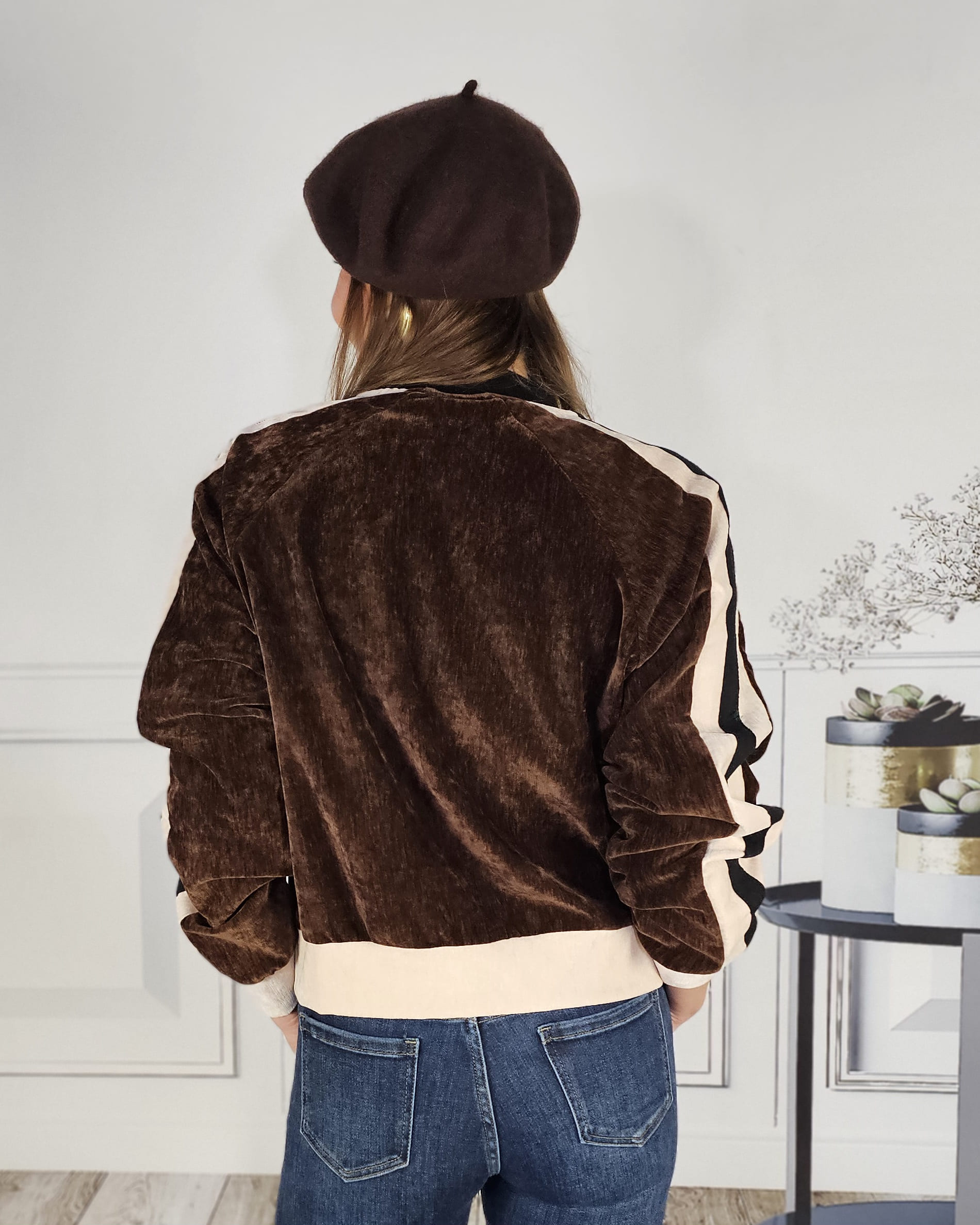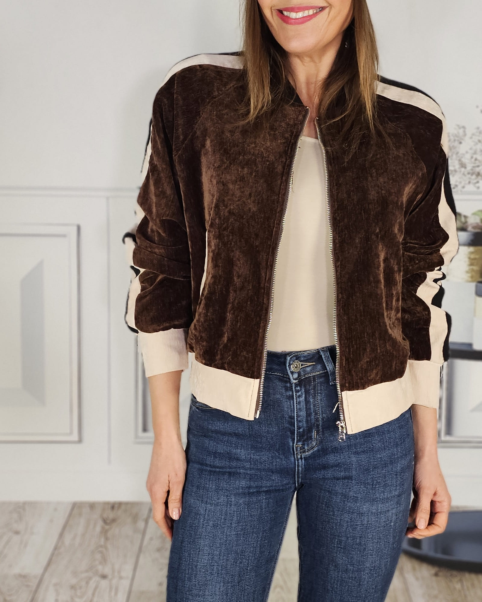 Una bomber de terciopelo -forrada en su totalidad- que queda de muerte. Con el Vaquero martina haces un conjunto sport-chic precioso.
