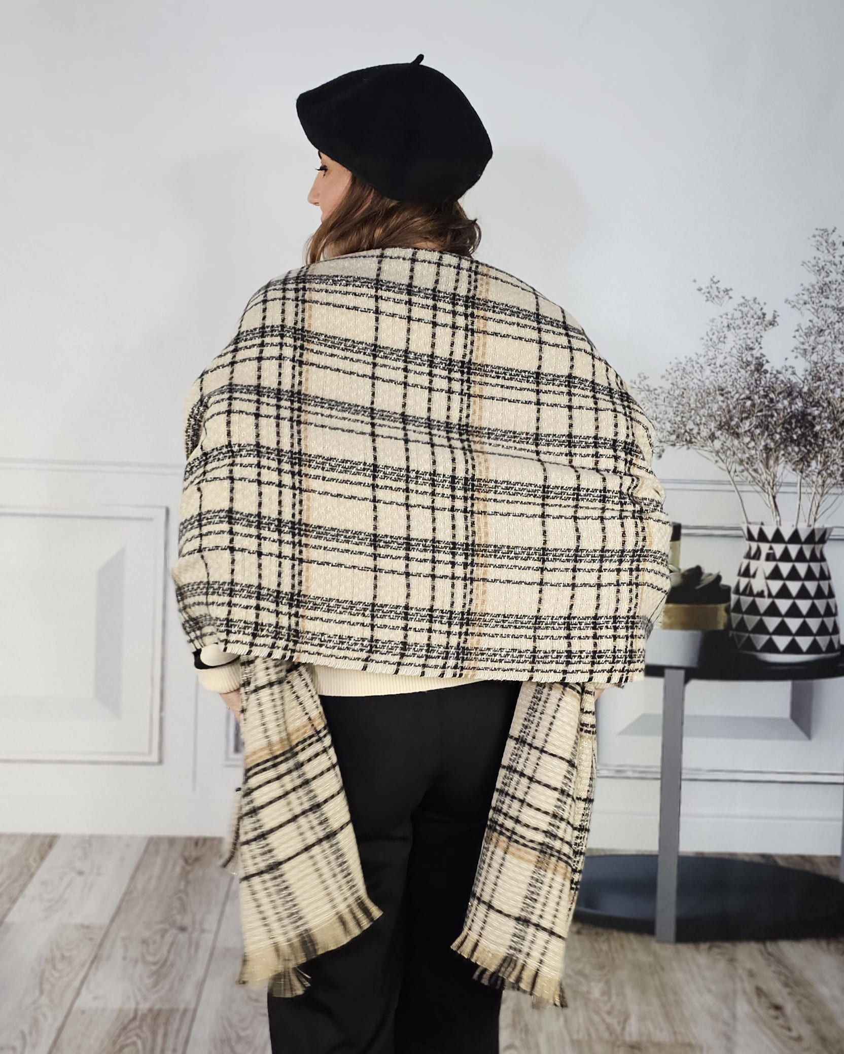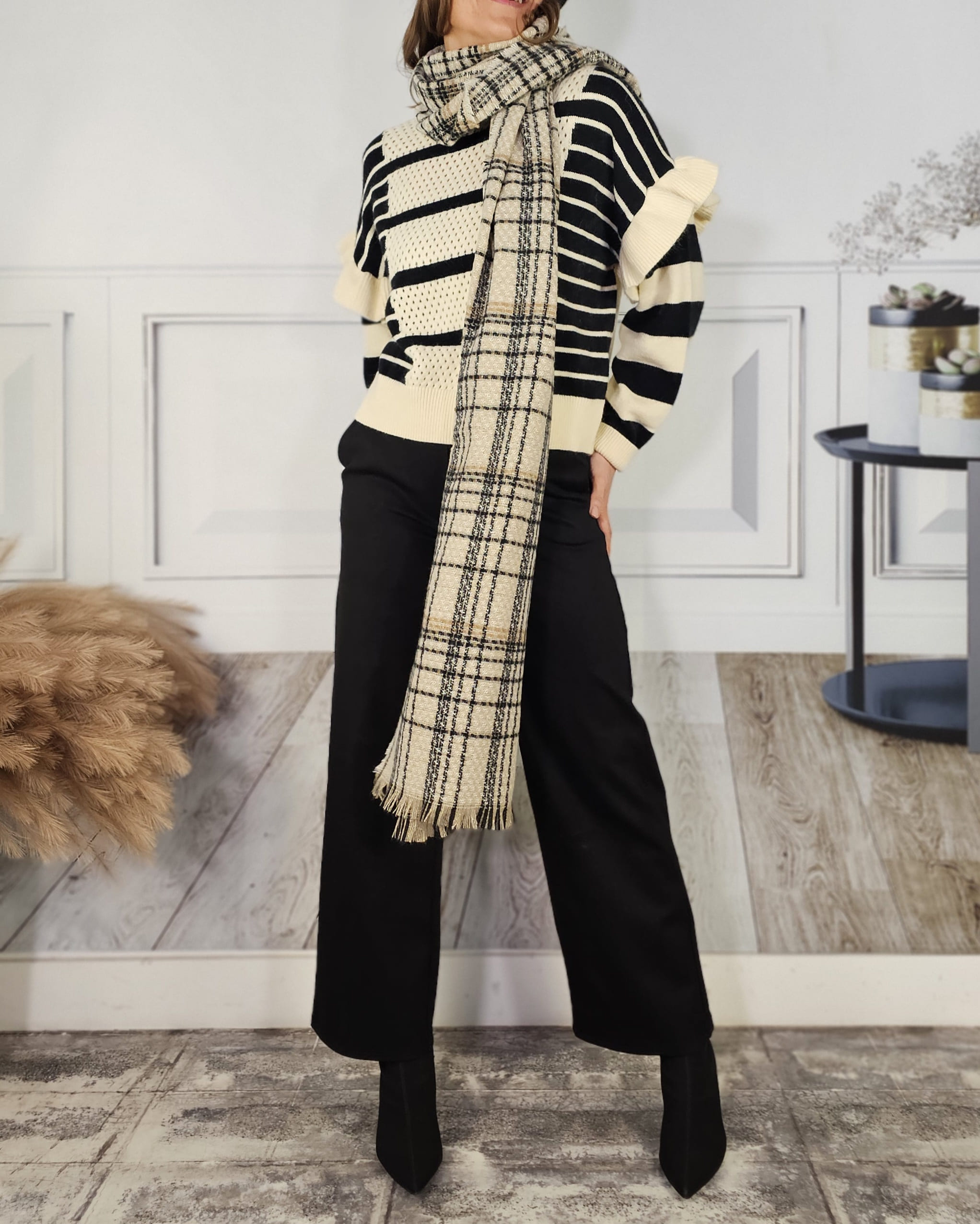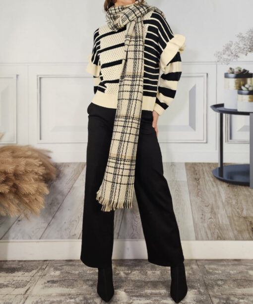 Como nos gustan las bufandas de cuadritos: Cuadros con rayas negras con terminación de flequitos a juego: Una pijada
