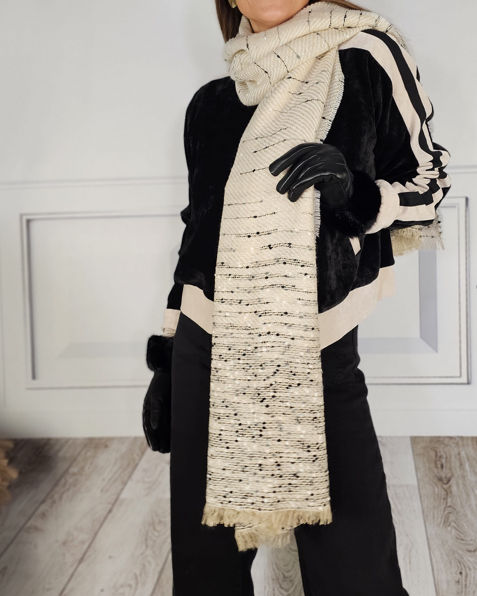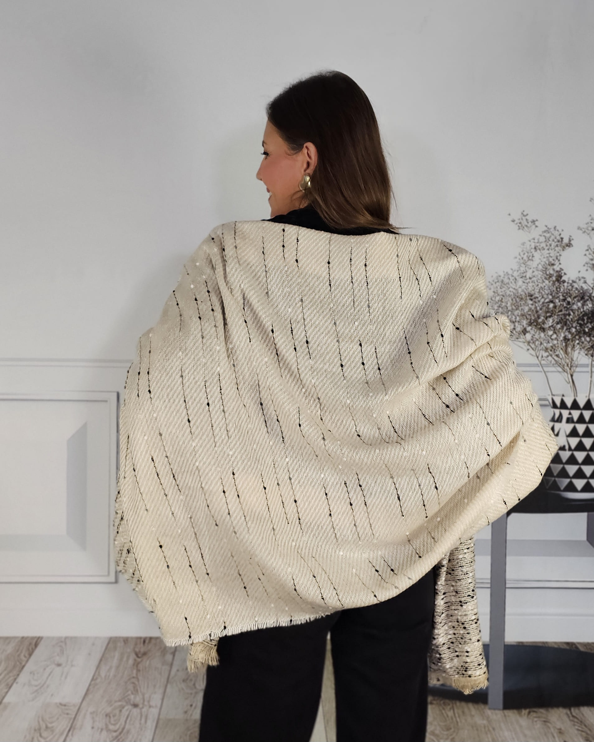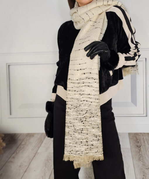 Una bufanda jaspeada en tonos beiges que enamora a cualquier look…tanto a la vista como a la puesta
