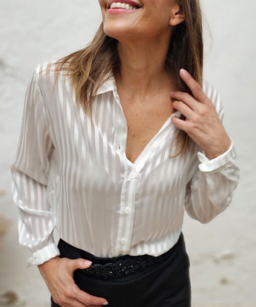 Andrew es una camisa preciosa. Rallada, con un sutil brillo.