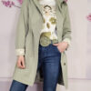 Cierre delantero con pequeños botones forrados a juego y puños elásticos de nido de abeja.