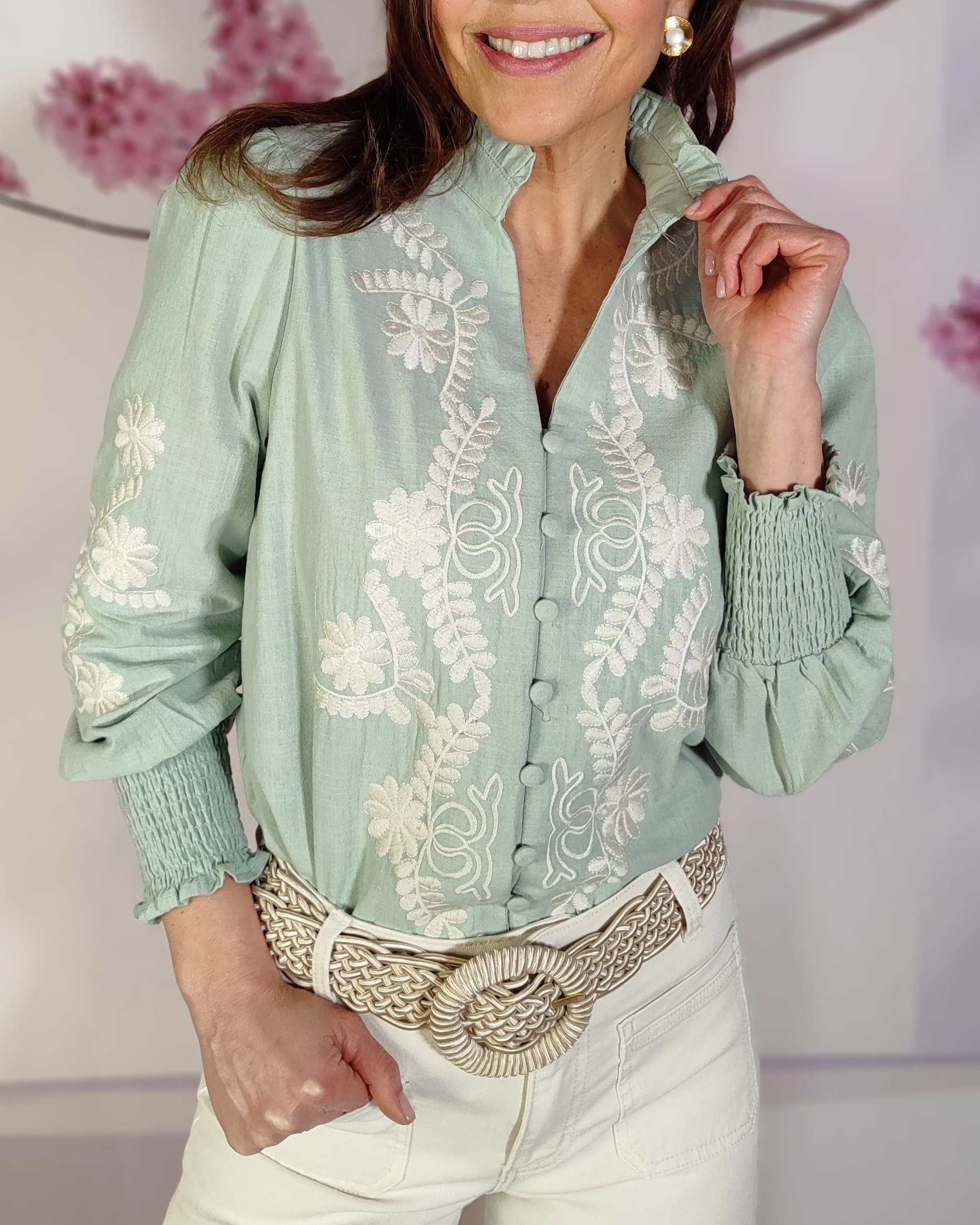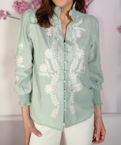 Los hombros ligeramente abullonados rematan la perfección de la Camisa Chic.