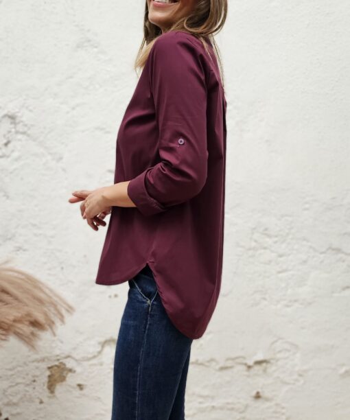 Color nuevo (.vino tinto). Suave al tacto, más larguita por detrás. Ideal de la muerte para llevar por fuera o por dentro, según la ocasión.