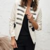 Un tono negro precioso con los filos de la manga y cuello en tono marfil.