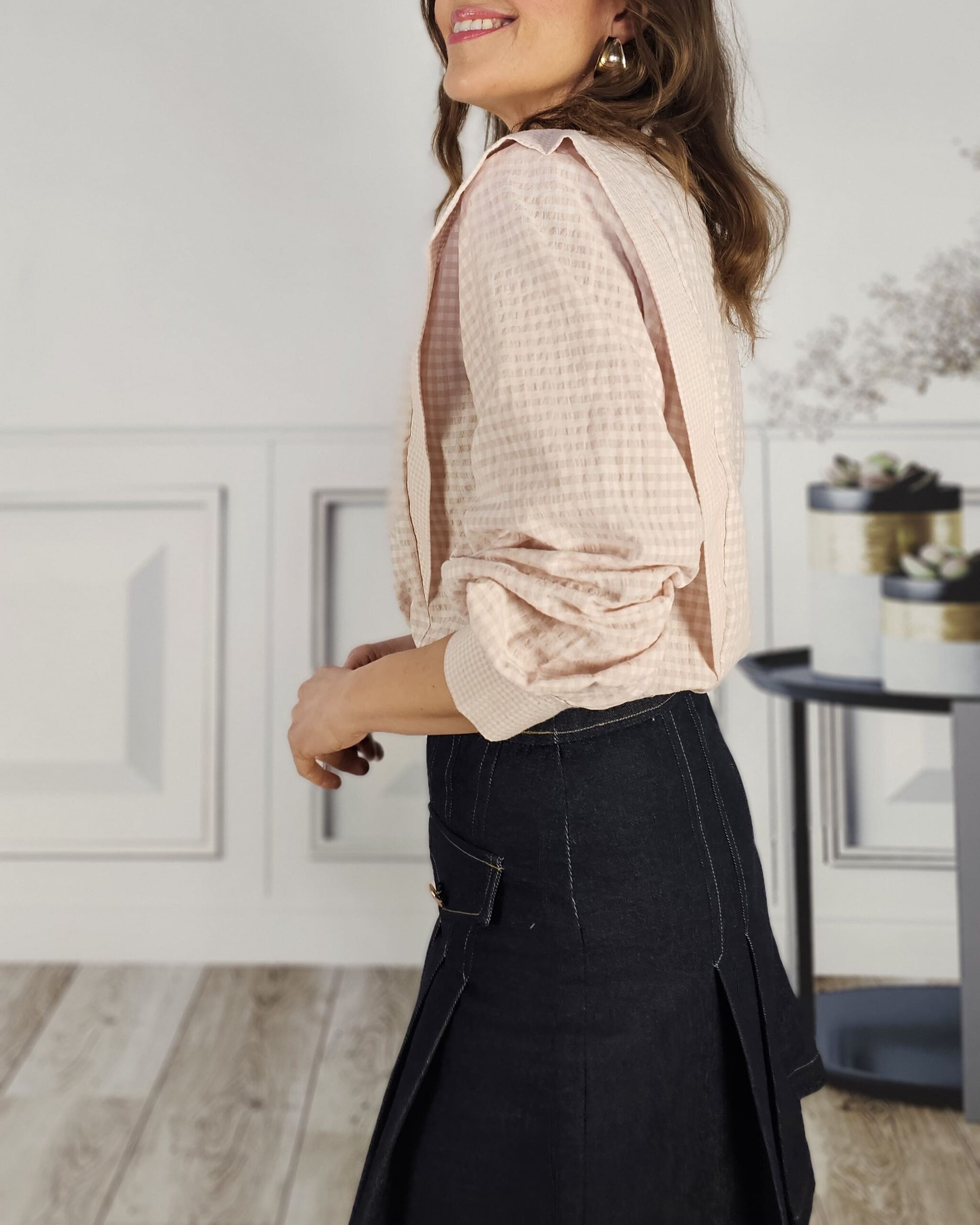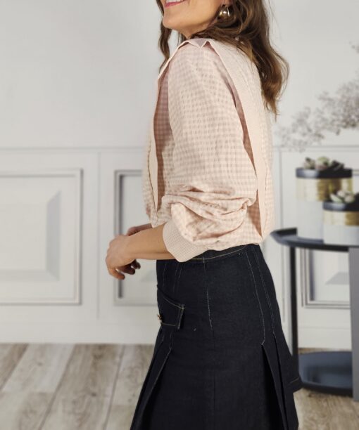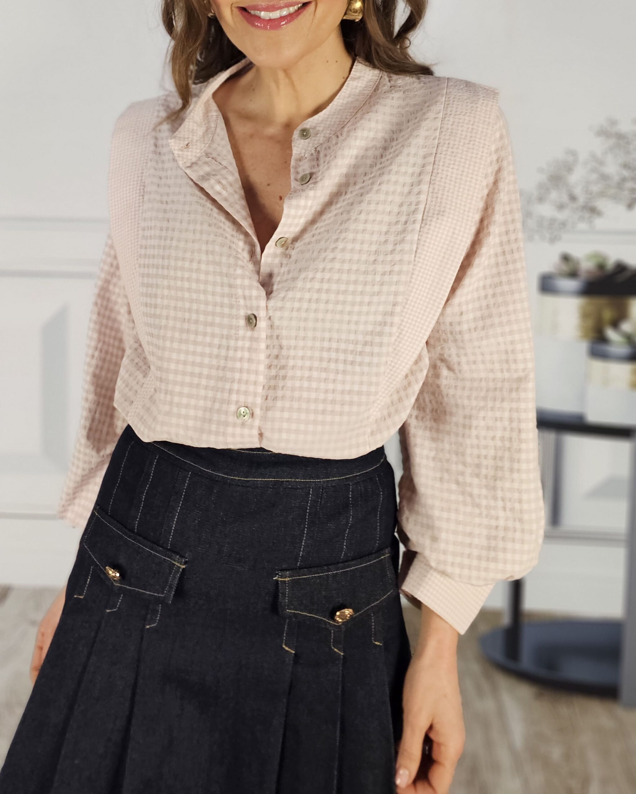 Una camisa , que no blusa…de cuadros cichy en tono rosita.