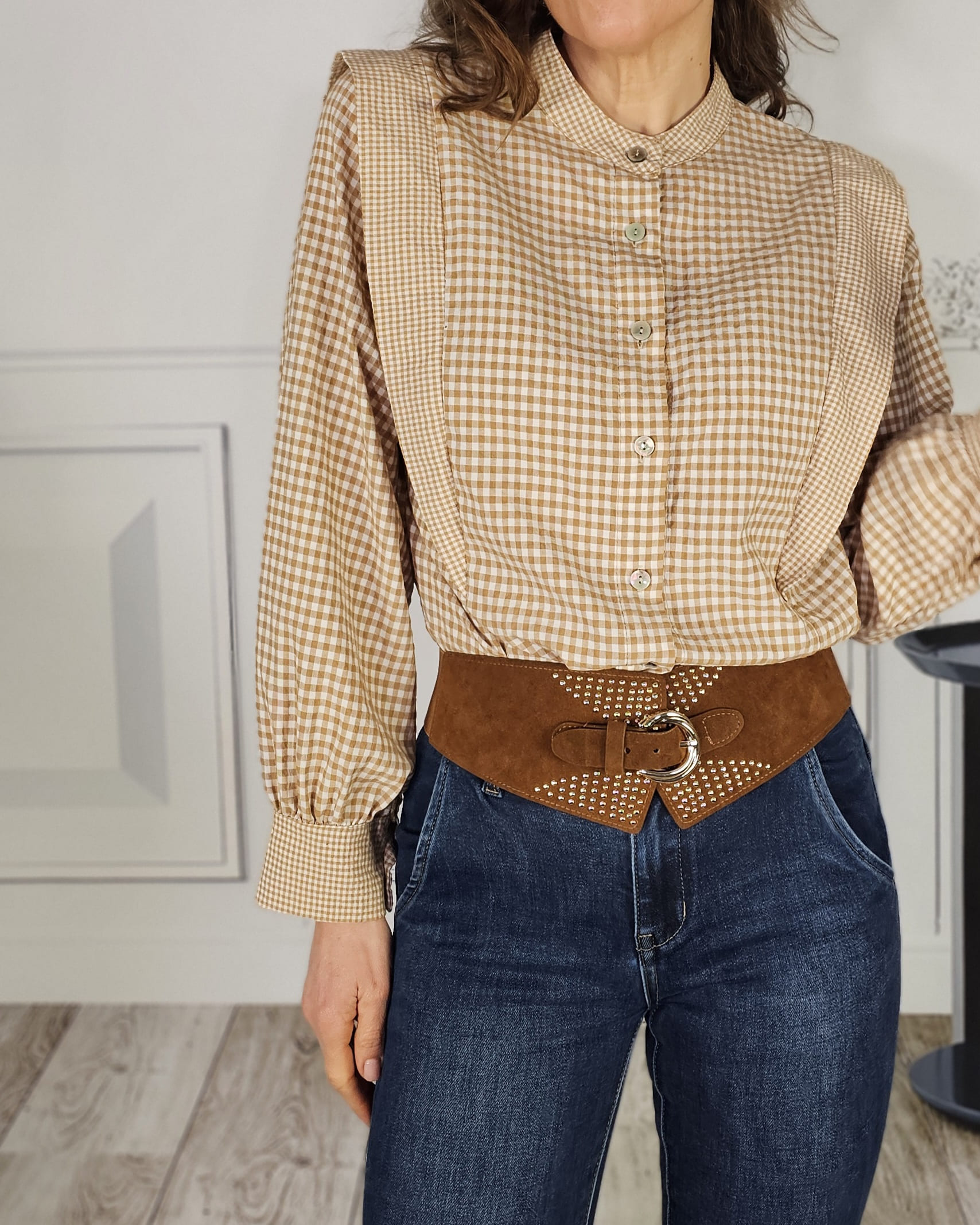 Una camisa , que no blusa…de cuadros cichy en tono rosita.