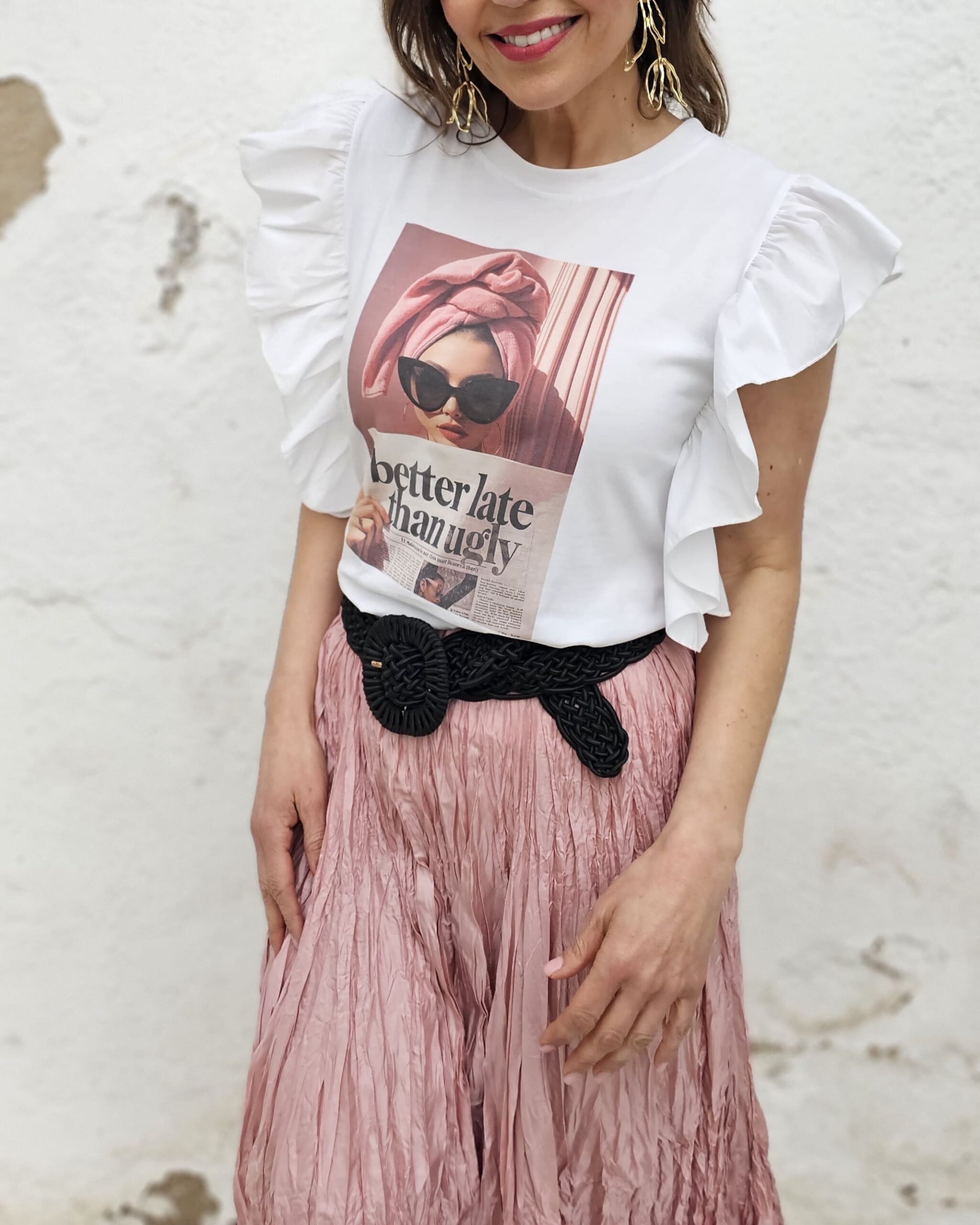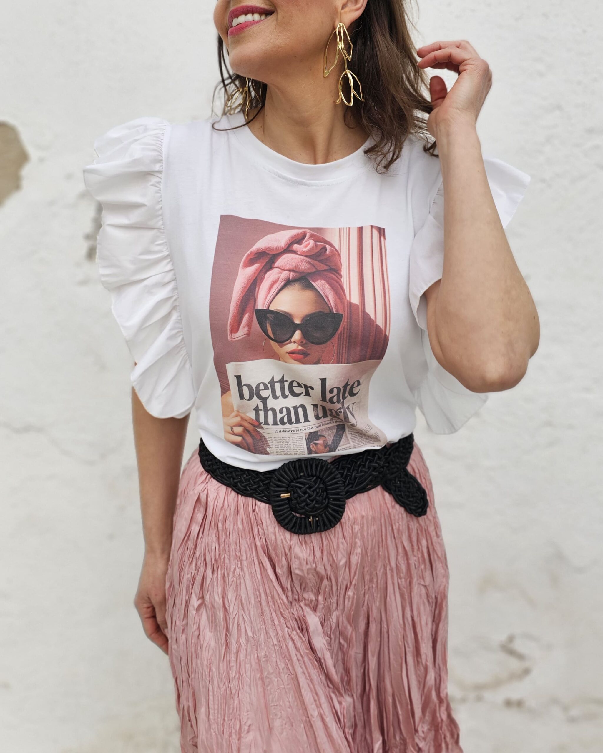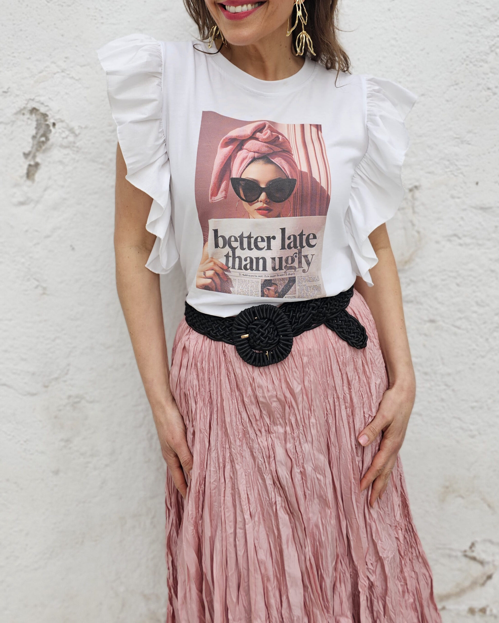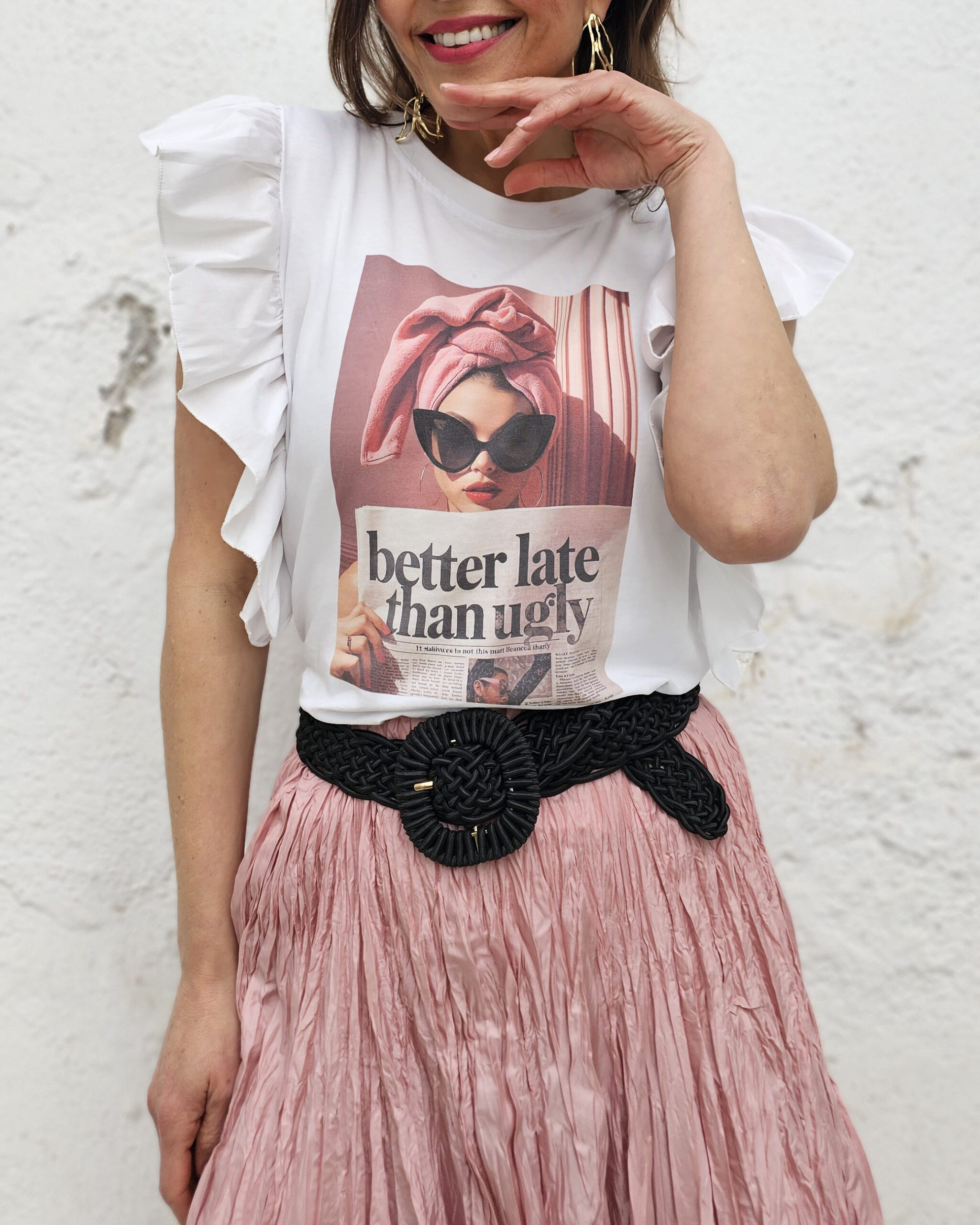 Una chica que dice: BETTER LATE THAN UGLY…en castellano sería: Mejor tarde que fea