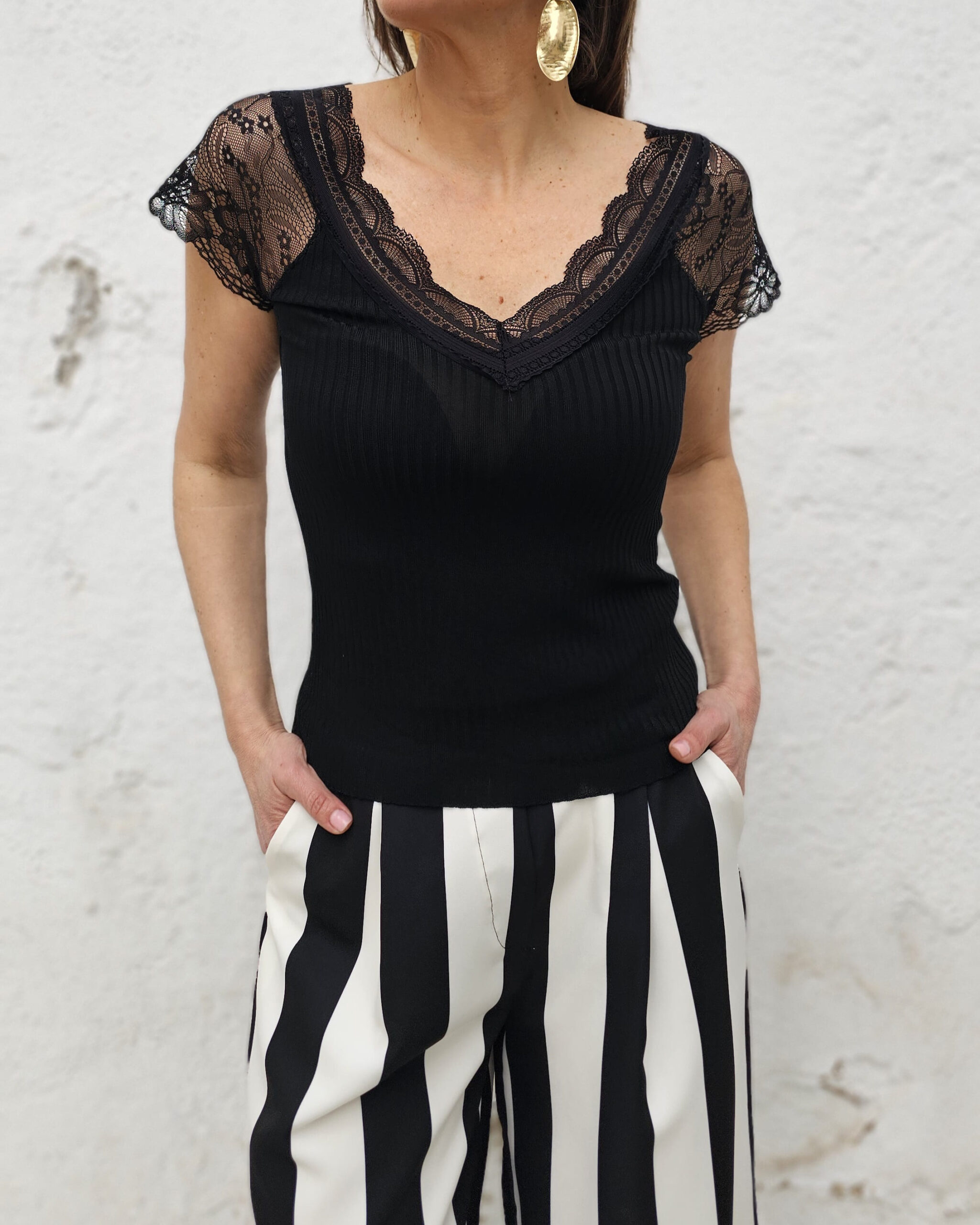 Canalé suave, encaje…una combinación preciosa y estilosa a rabiar.