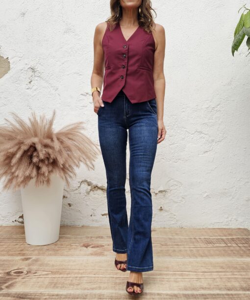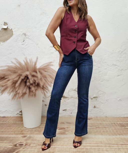 Un vino tinto precioso con botones para abrochar a tu gusto.