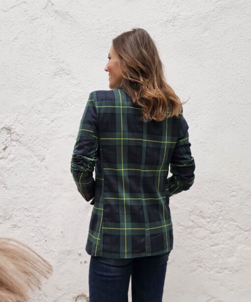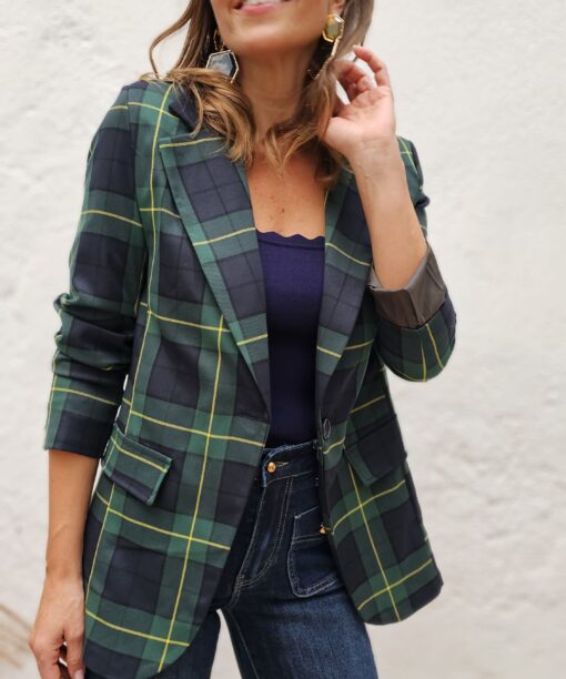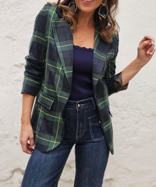 Una Doña Chaqueta. De cuadros verdes y azules con rayitas sutiles en tono mostaza.