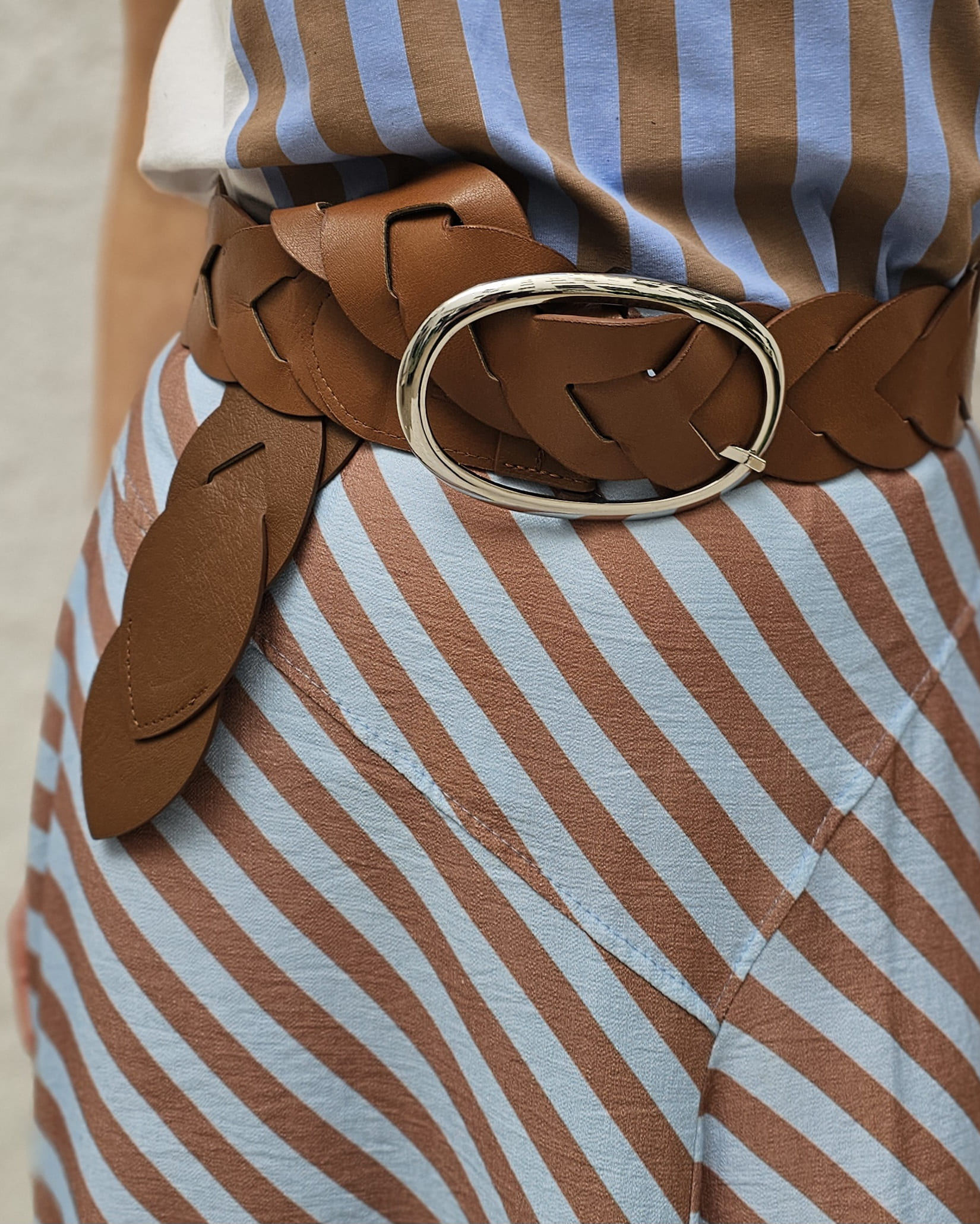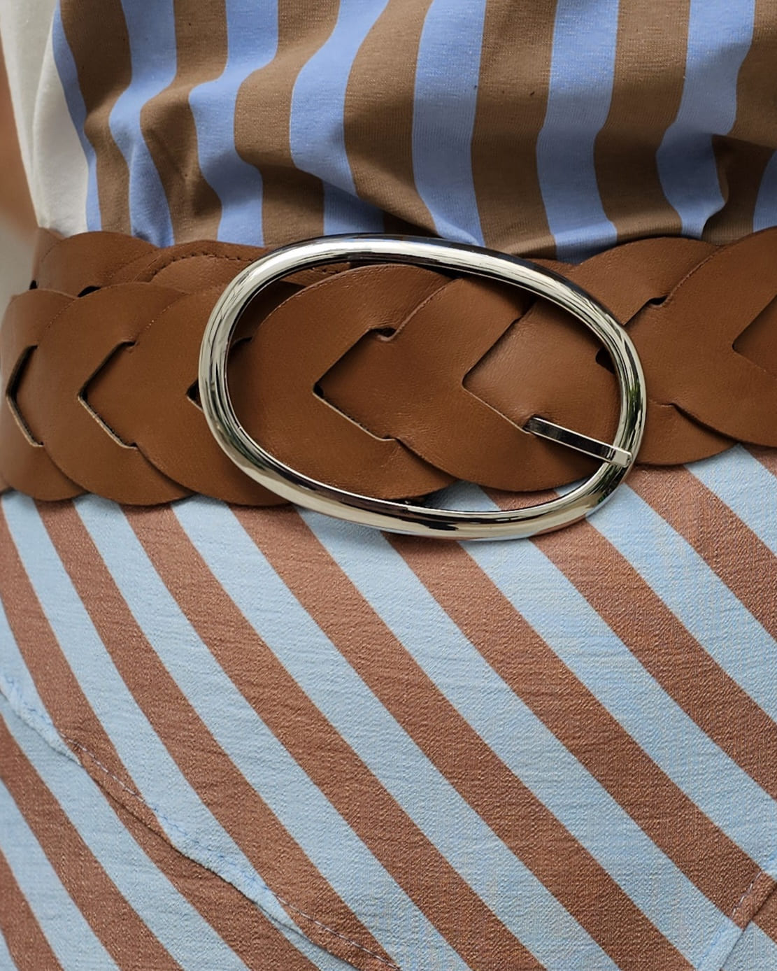 Cinturón trenzado con hebilla plateada…un cinturón que da muchísimo juego.
