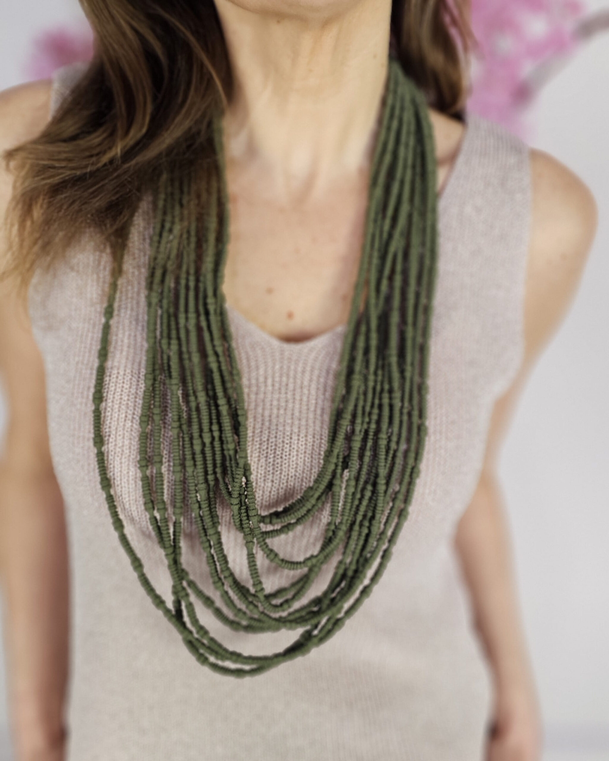 Es un collar que tiene una clase de cordón precioso que le da un toque al conjunto Alegrías espectacular.