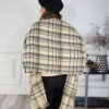 La parte de arriba es un jersey en tono negro y crudo con rayas negras y parte de abajo y mangas también en raya cruda.