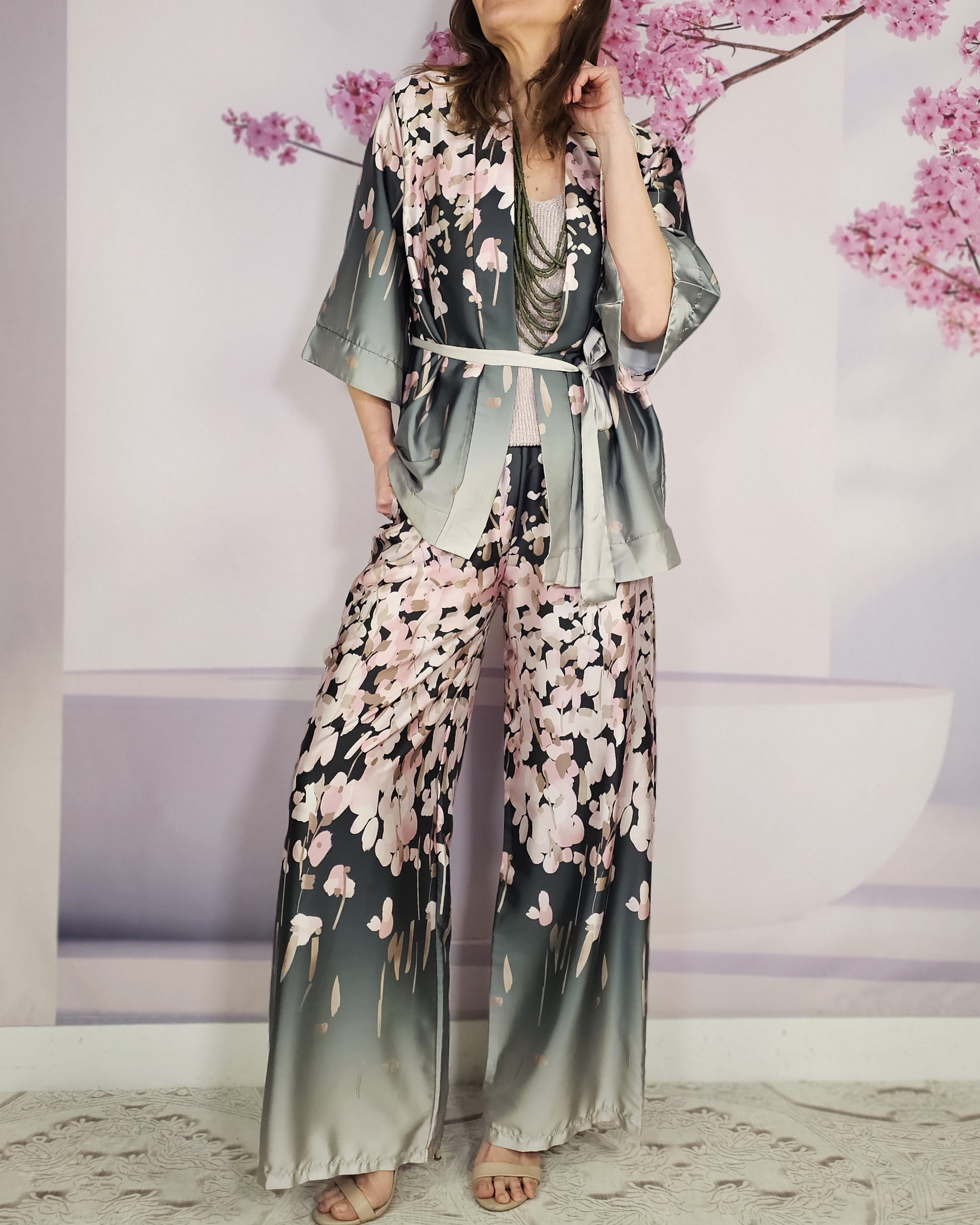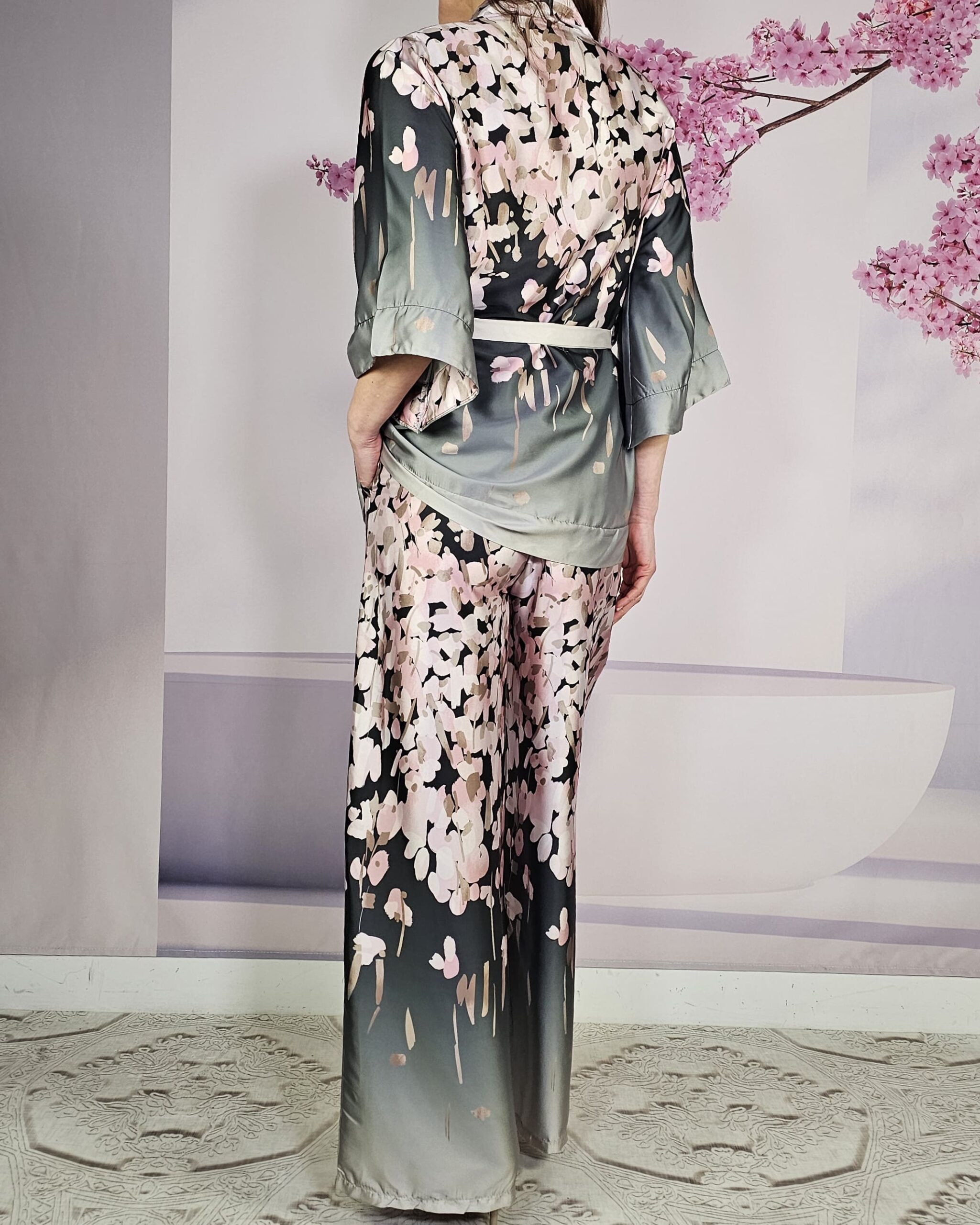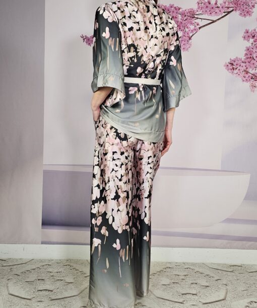 - Medidas: 1,05m de largo el pantalón . 72 cm de largo -desde la costura del hombro- es el largo del Kimono.