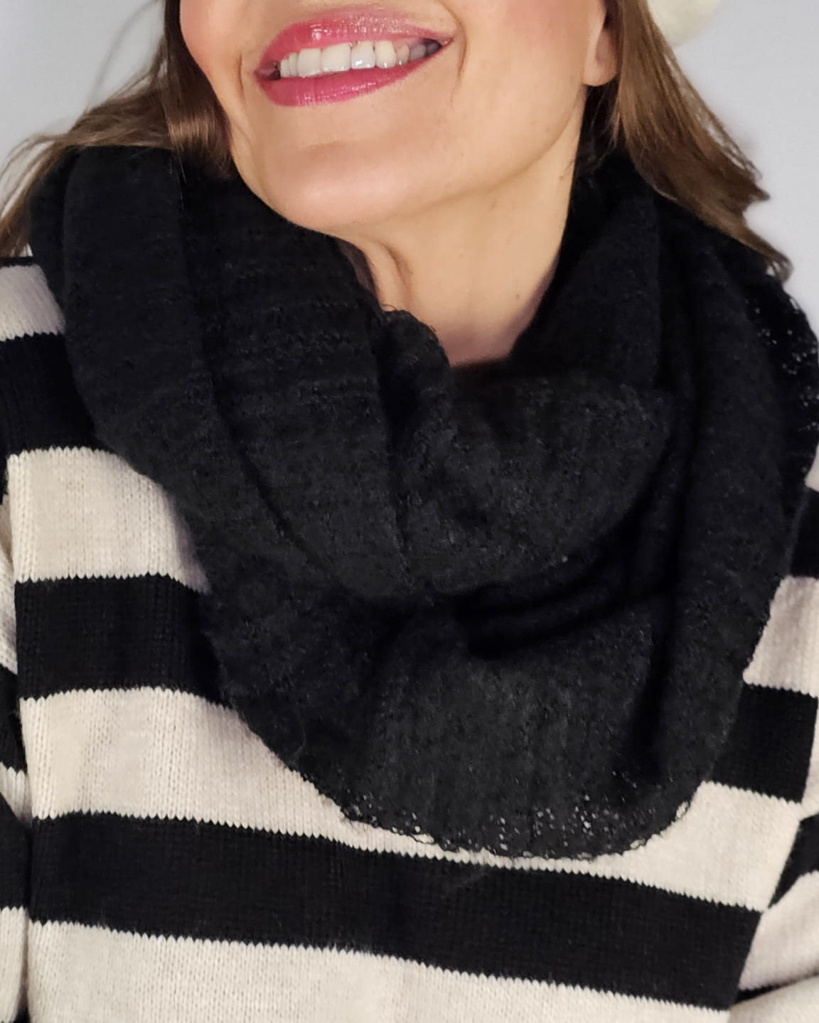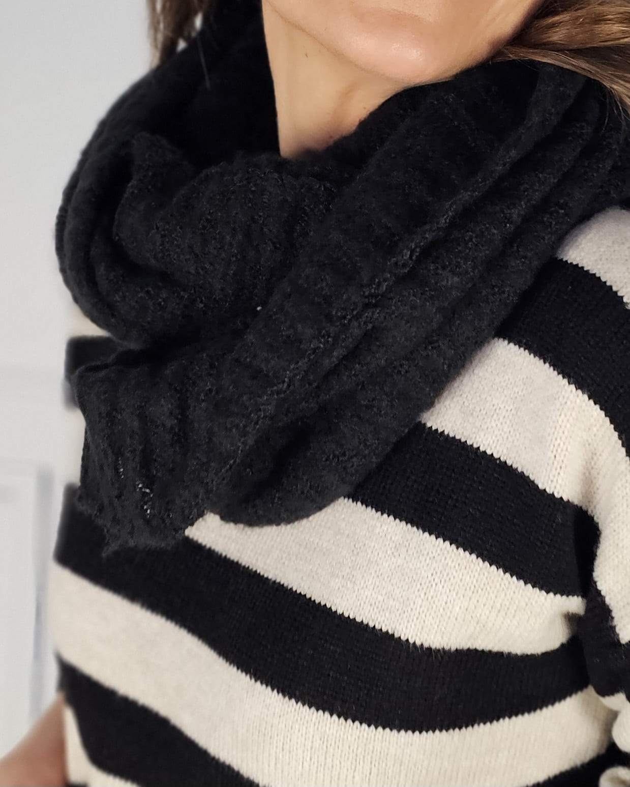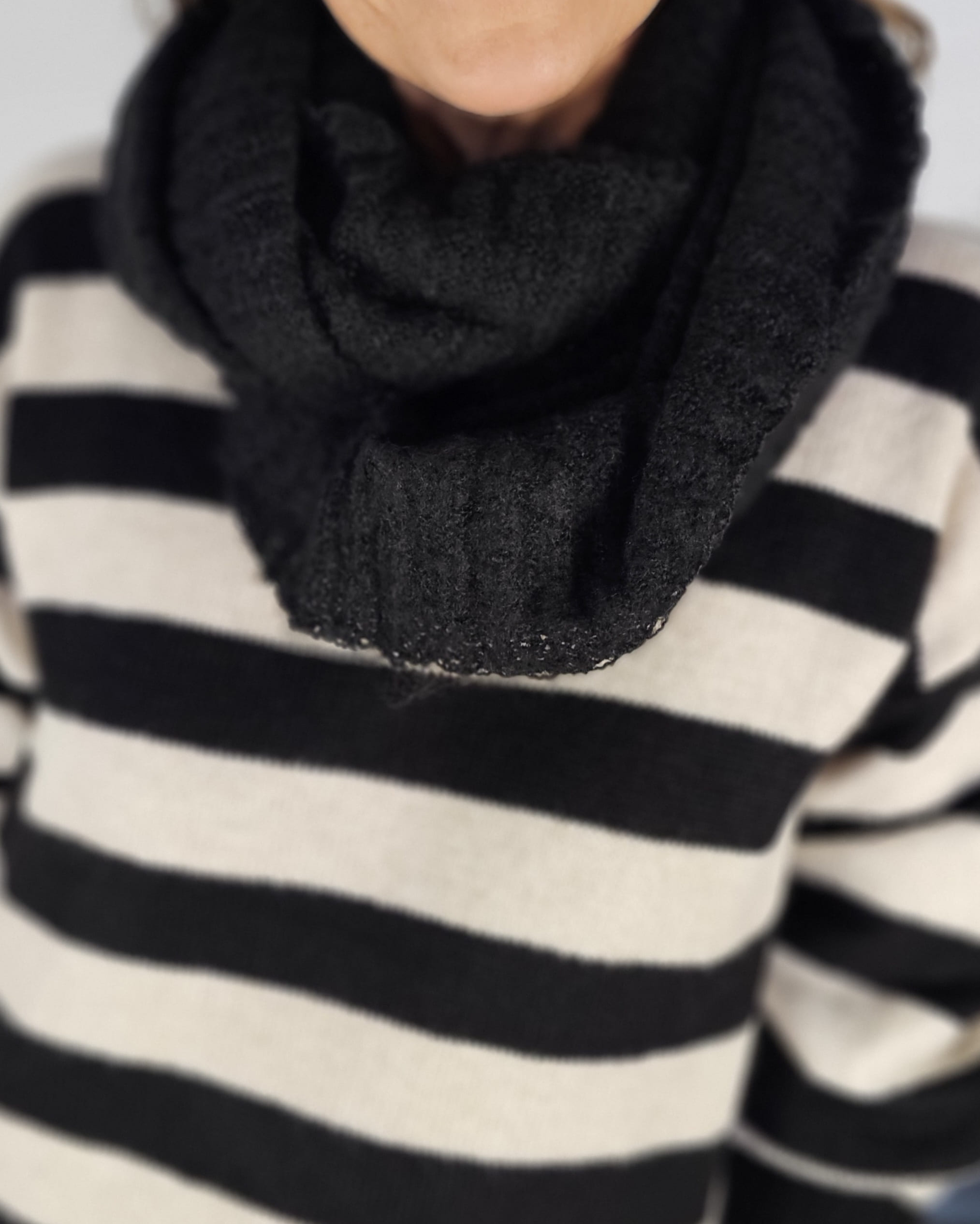 Puedes darle doble vuelta fácilmente o dejártelo caído como un bufandón (pero no es una bufanda, es un cuello unido).