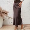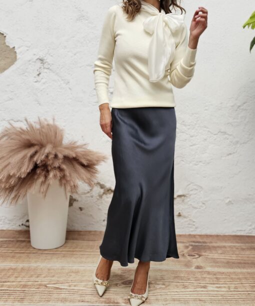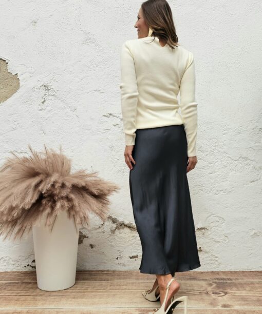 Raso, largo midi perfecto, cortada al bies (no se ve la costura).