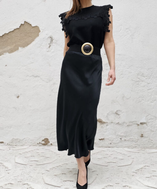 El negro…ese color elegante que siempre está de moda. Cortada al bies…una pijada en toda regla.