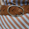 Rayas azules y marrones, engomada en la parte trasera de la cintura.