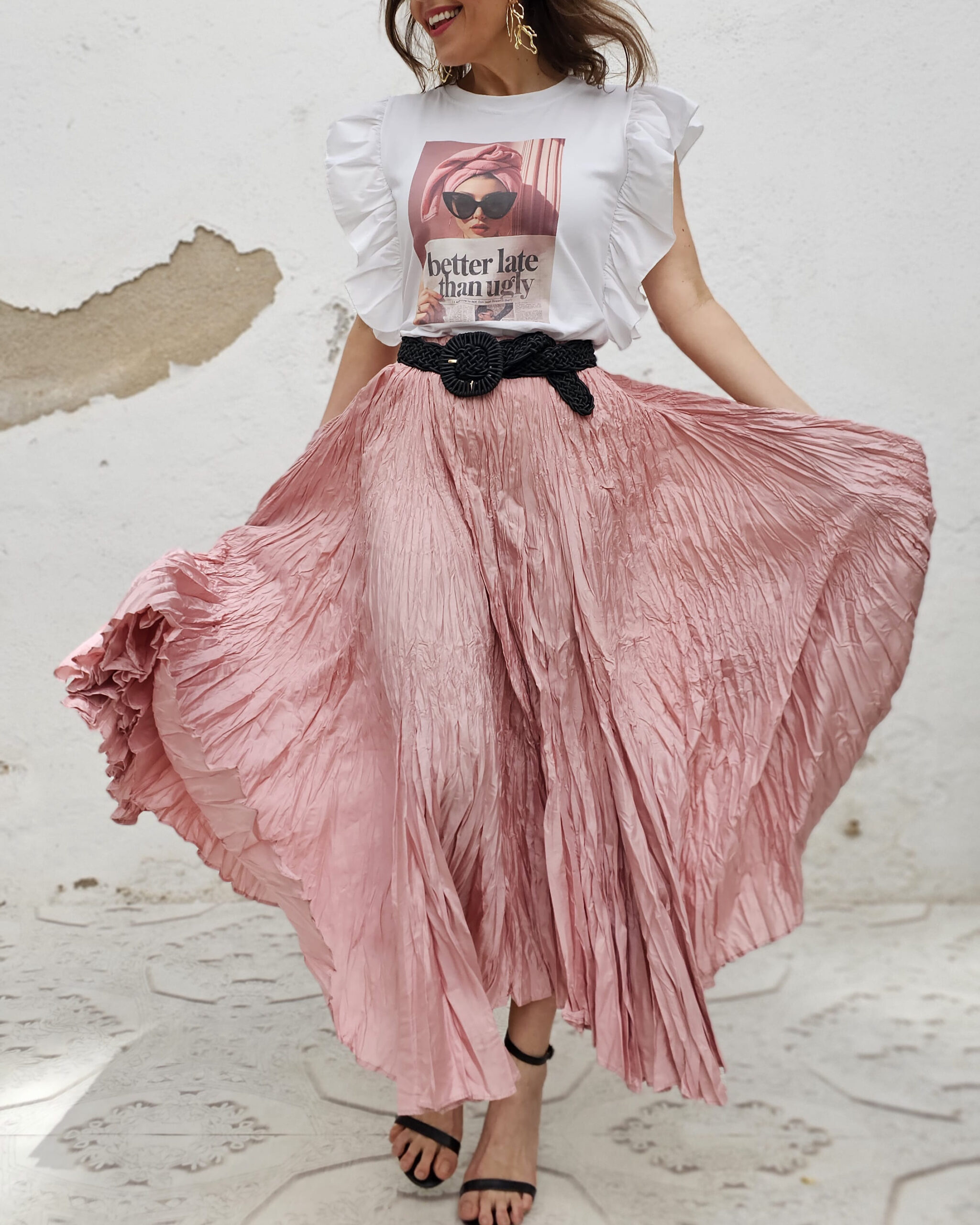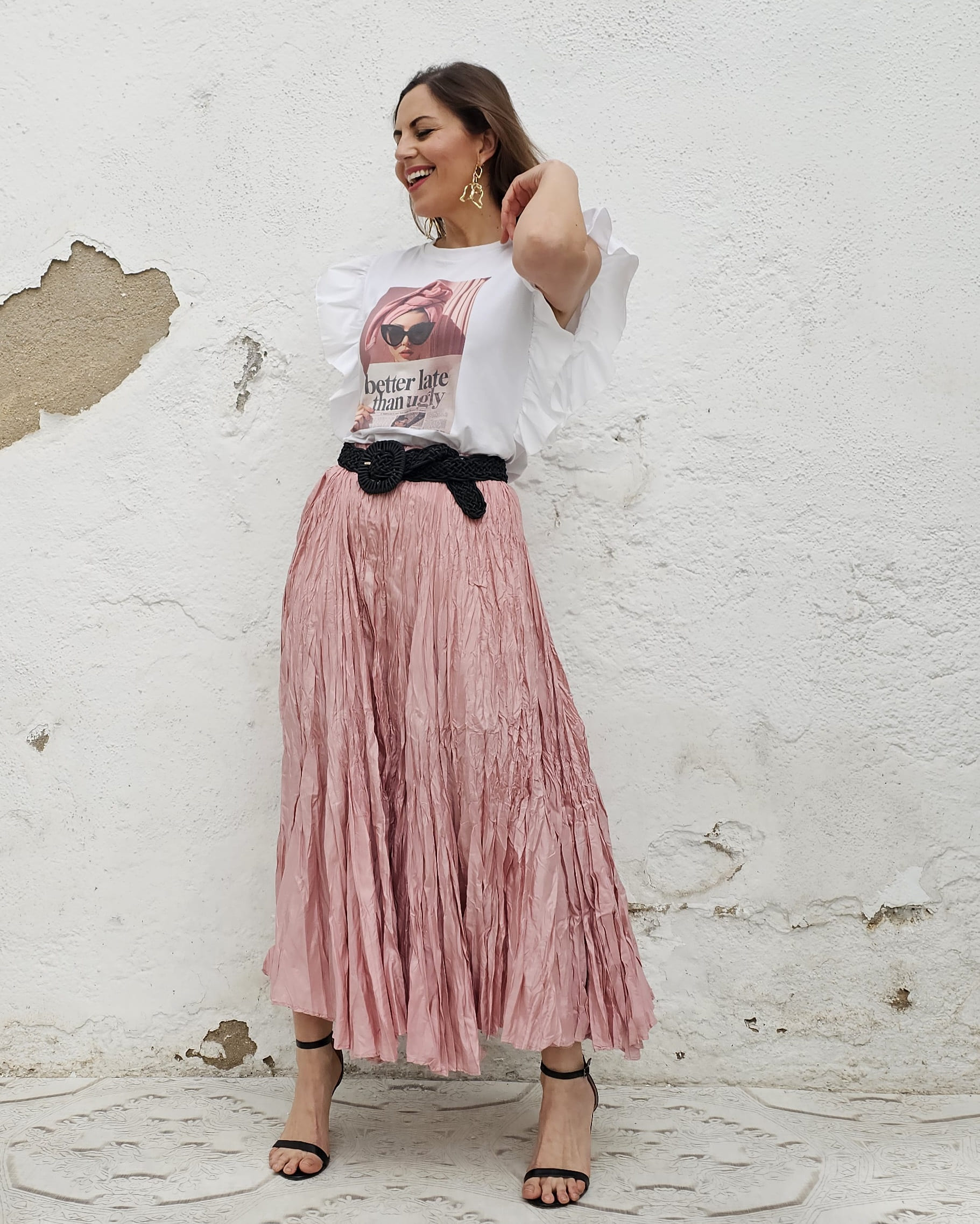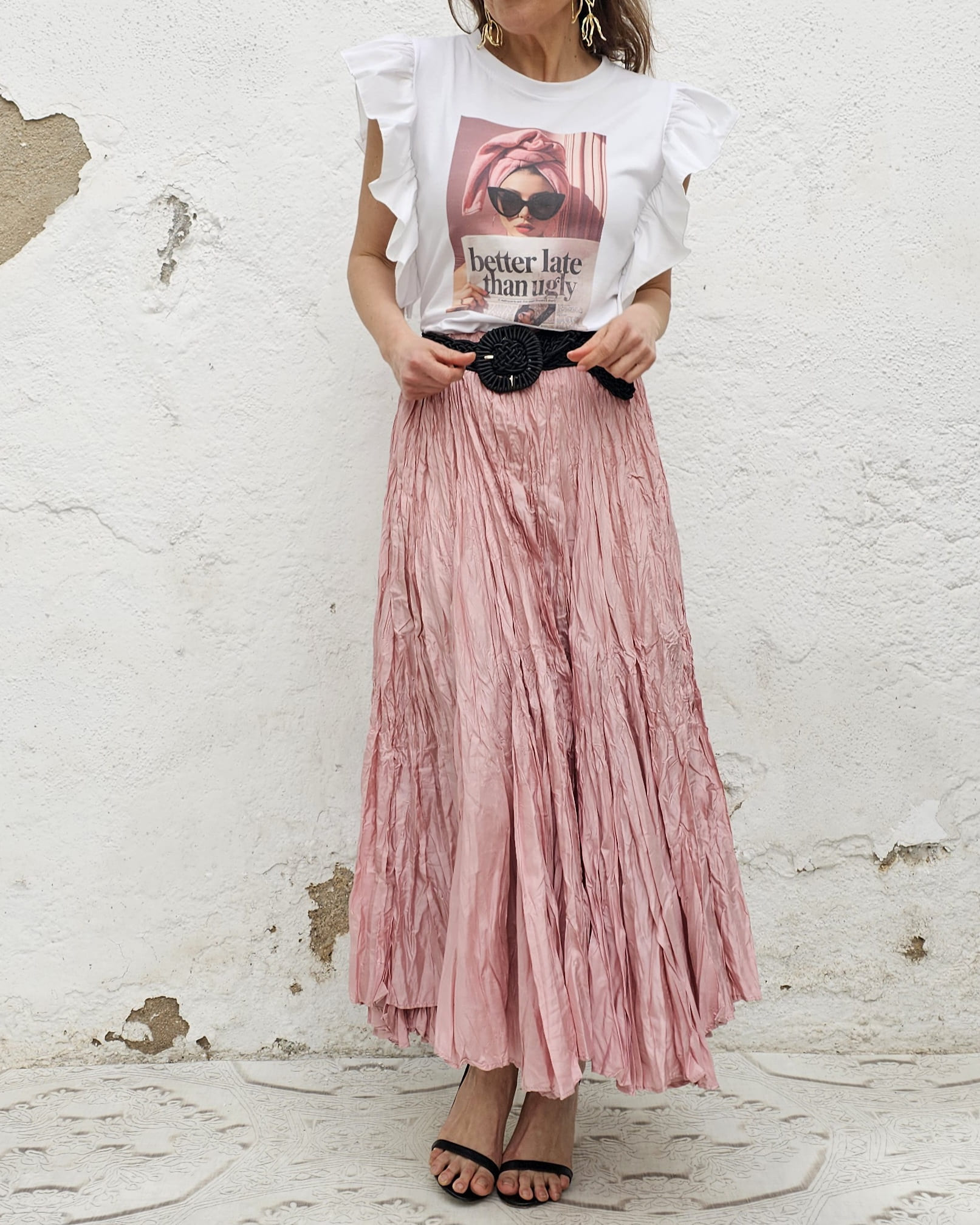 Una falda plisada con efecto arrugado permanente, lo que le da un movimiento espectacular.