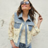 En tono marrón con toques sutiles de malva y verdes olivas..patillas de cadenita en todo dorado.