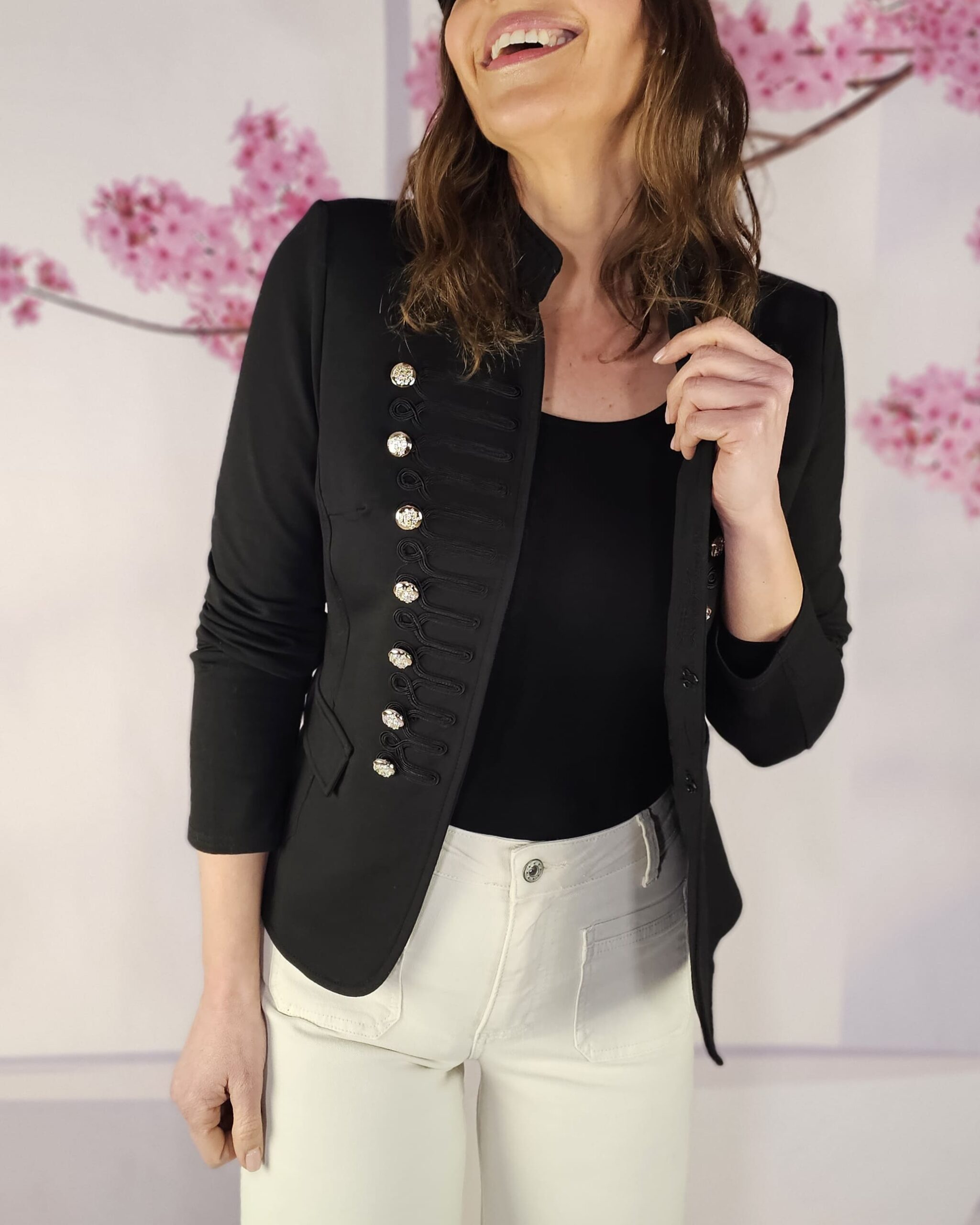 Con el conjunto formado por la Chaqueta Abba en negro, queda de lujo.