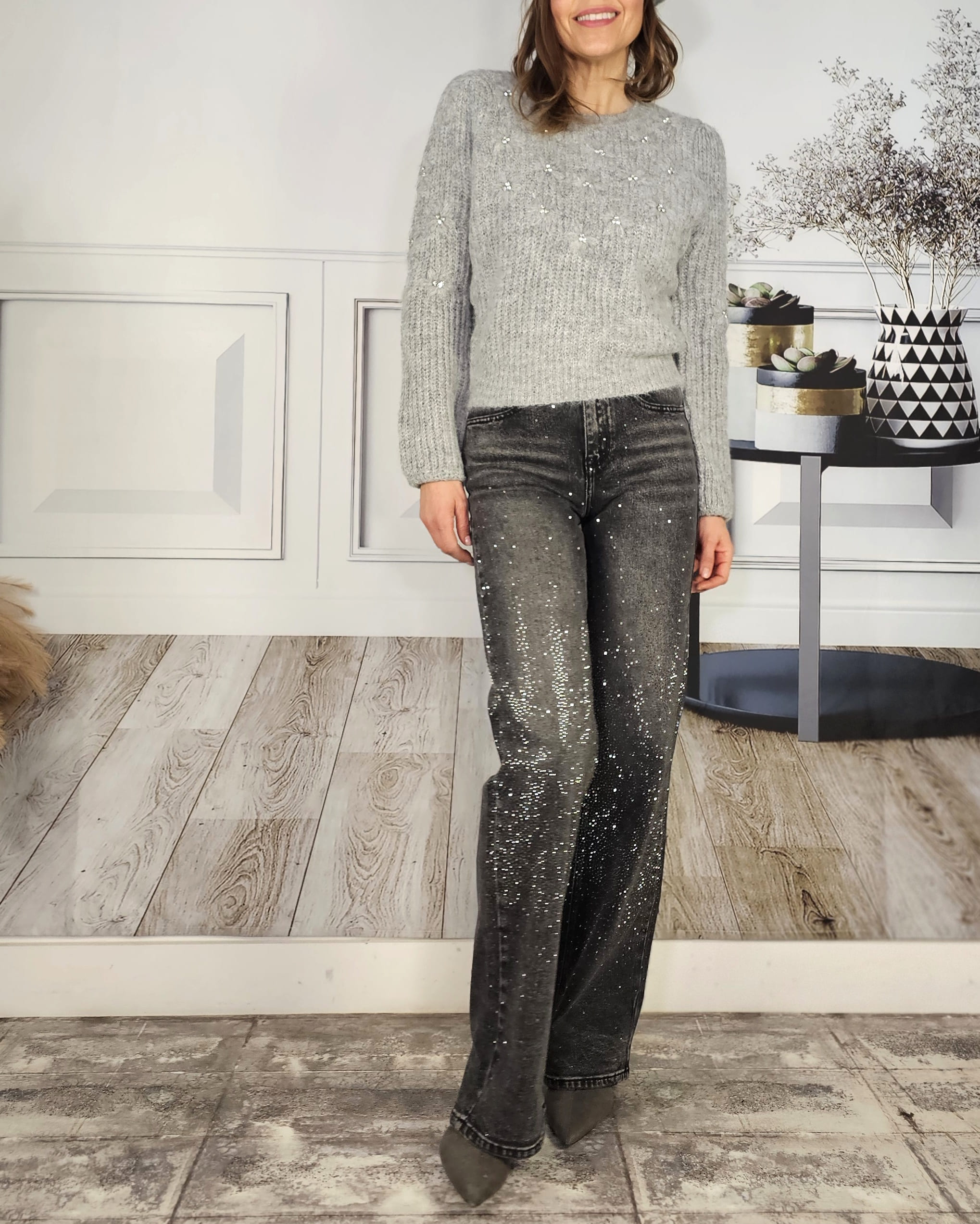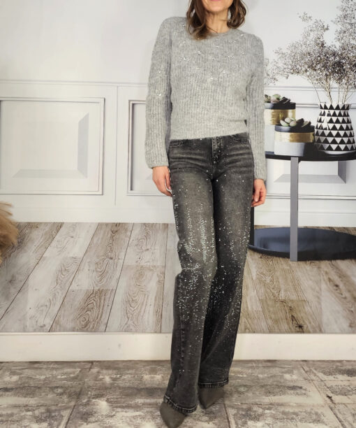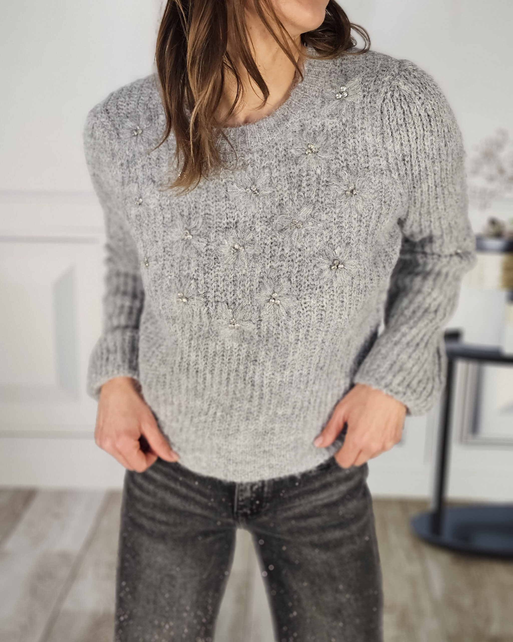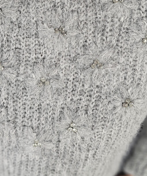 Flores bordadas y strass dentono plata en el centro de cada flor.