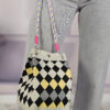 De hilo suave, efecto rombo con volante y perlas bordeándo dicho rombo con un volantito super romántico.