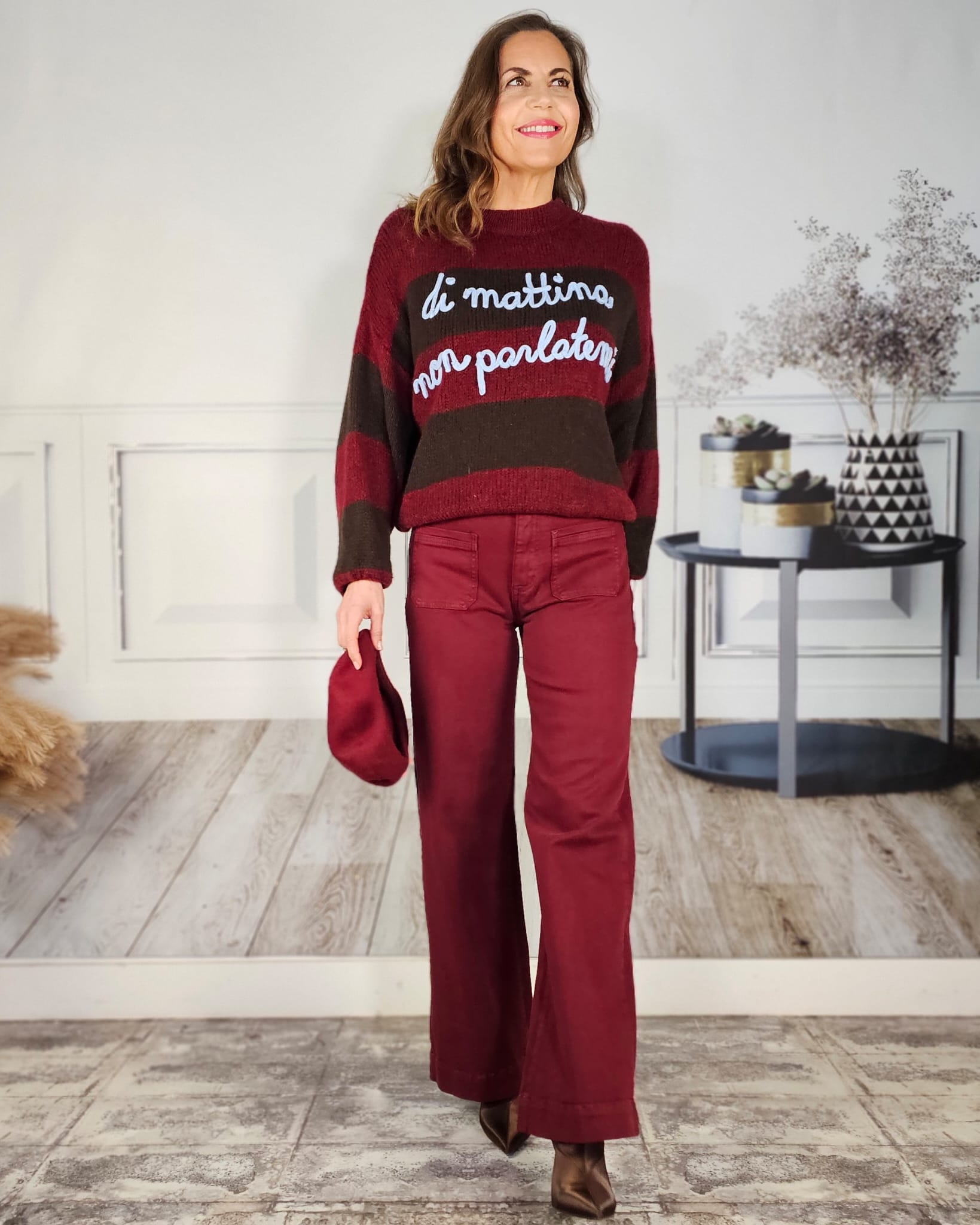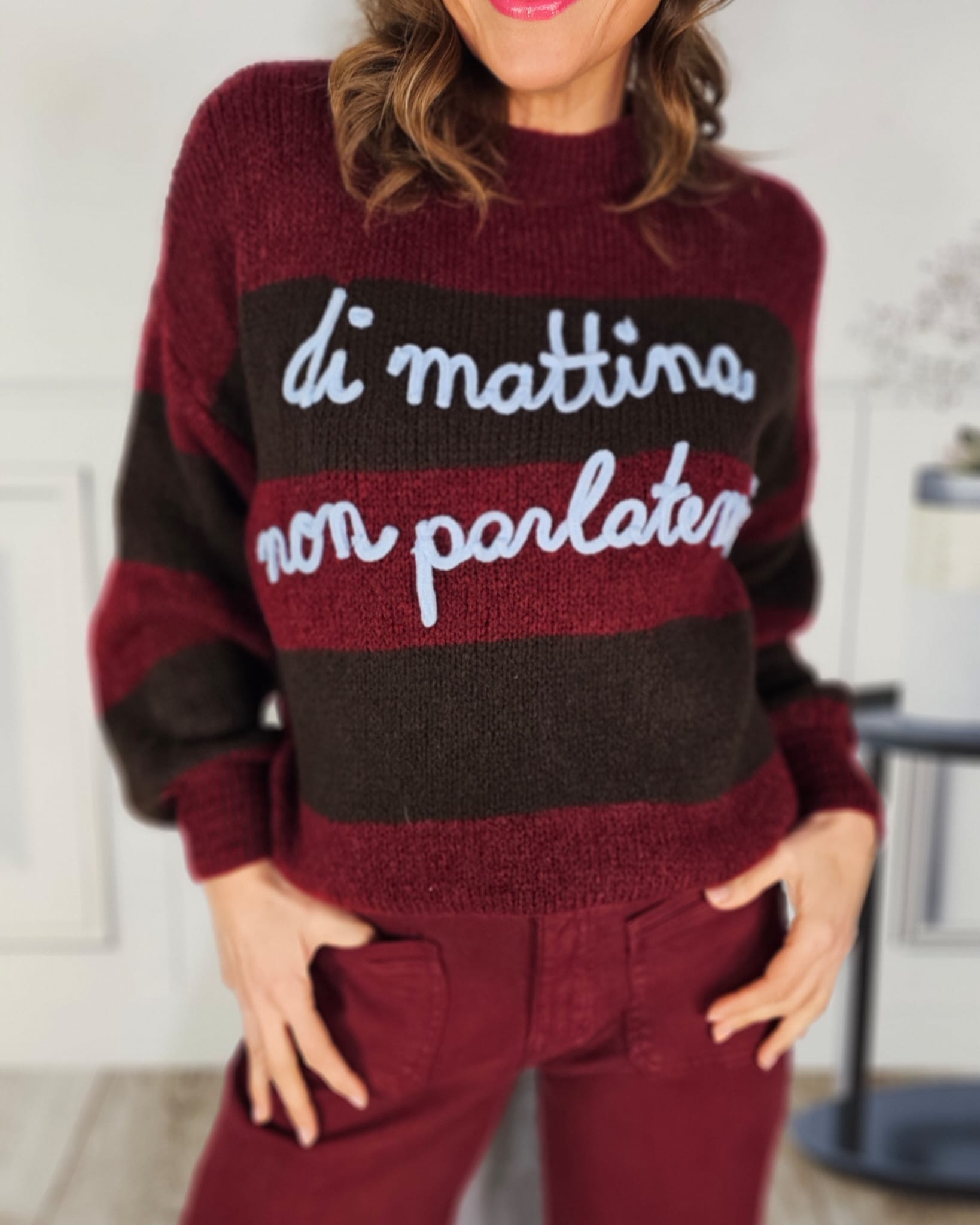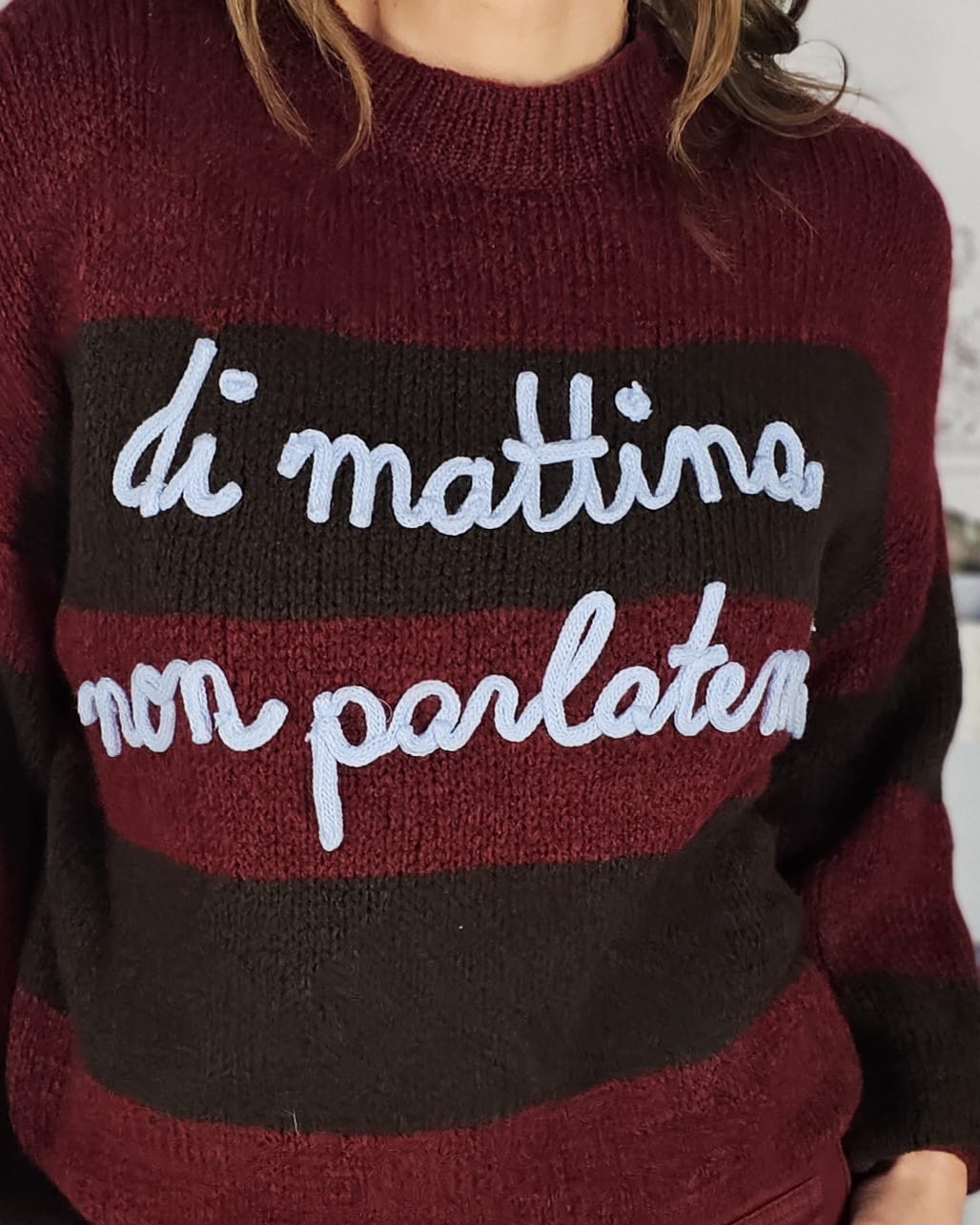 Un jersey marrón con las letras I don´t Like en inglés…eso no puede salir mal.