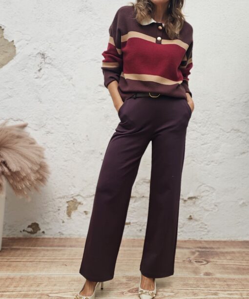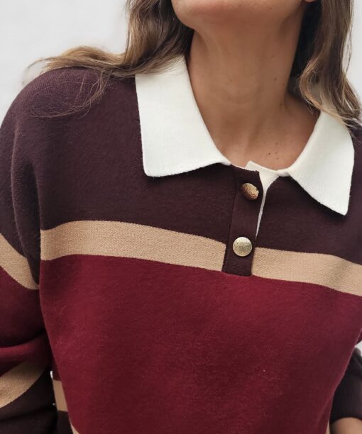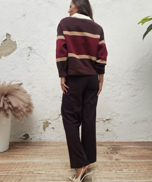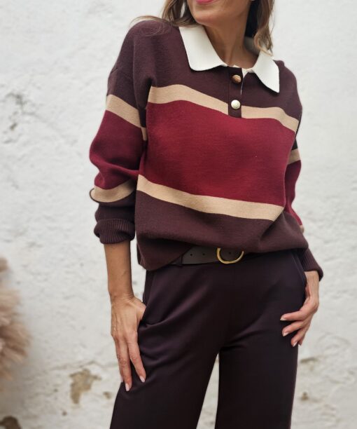 Tres tonos: Marrón, camel y burdeos No nos cansamos de decirlo: Que jersey más pijo.