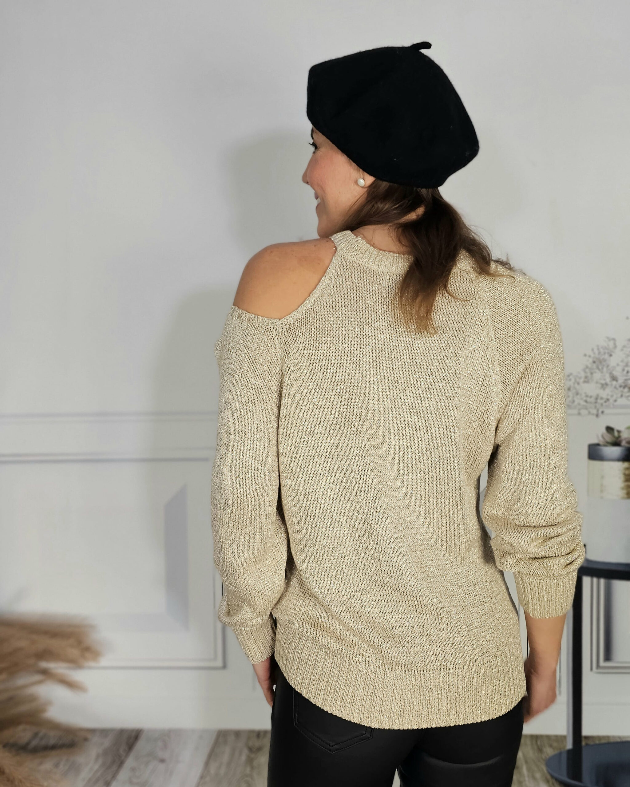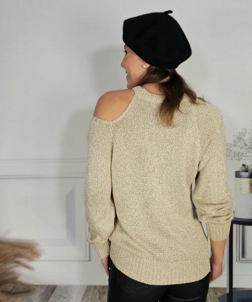 Doradooo…por lo que ya de por si es festivo..es un jersey diferente…con un hombro al descubierto pero a la vez de manga larga.