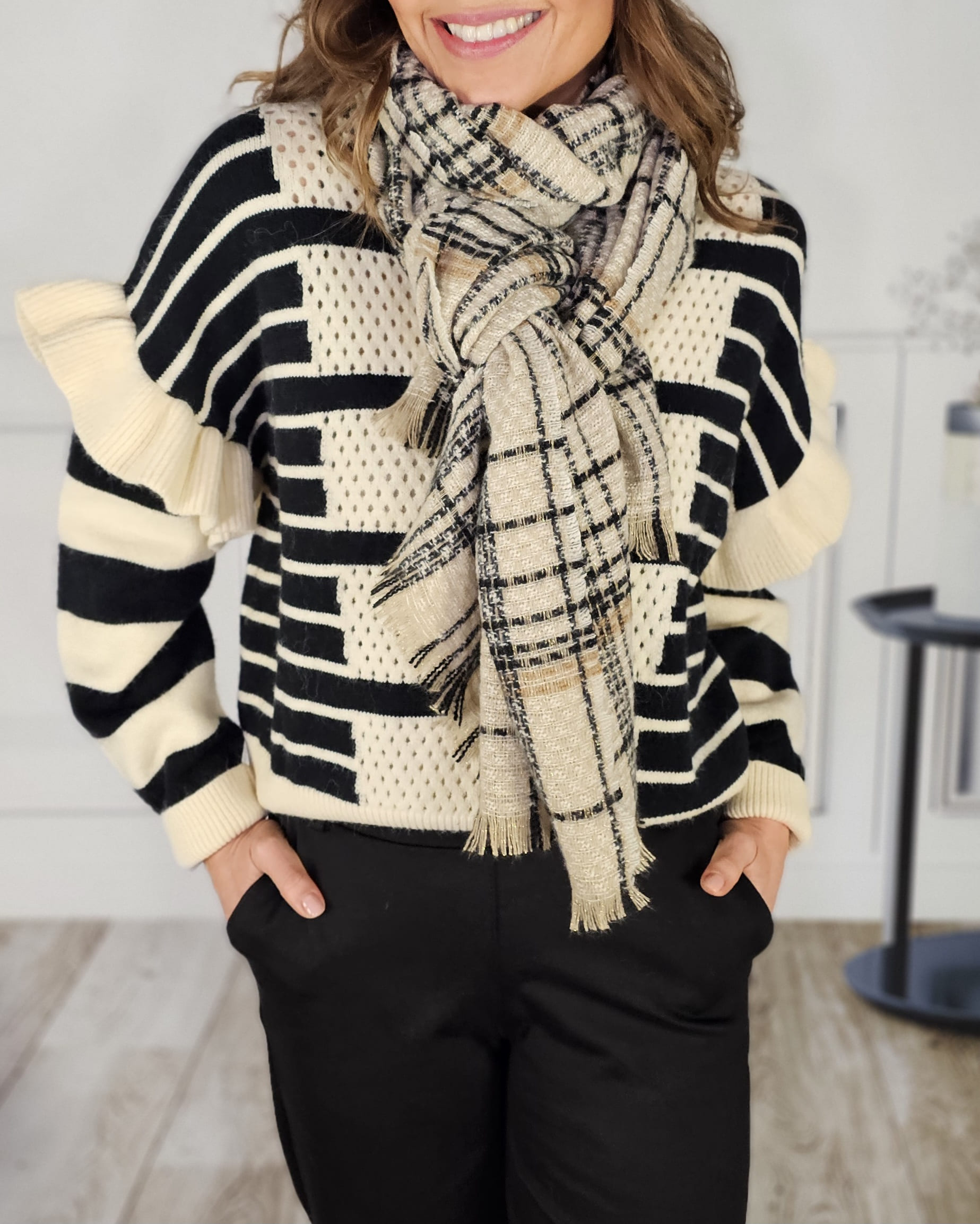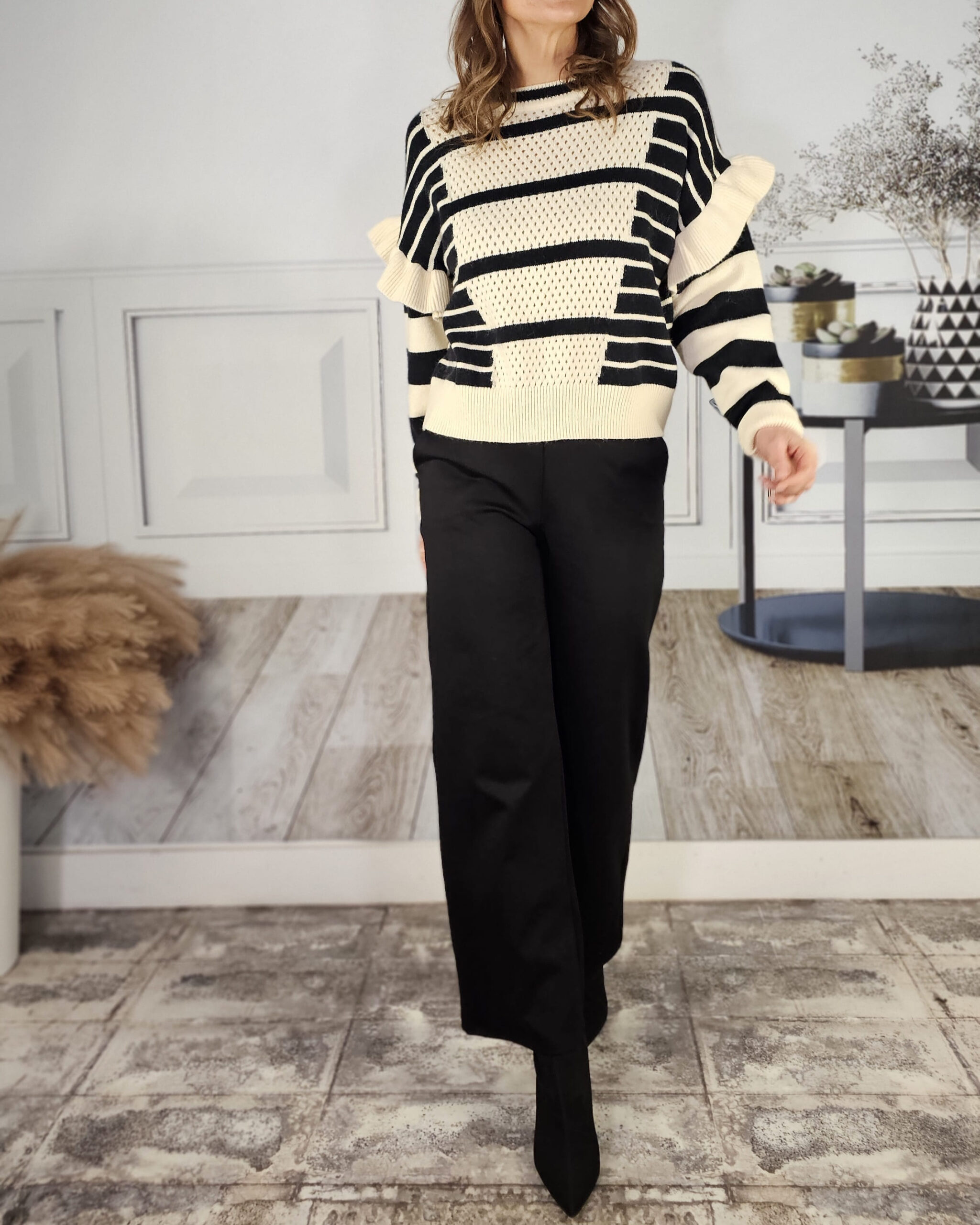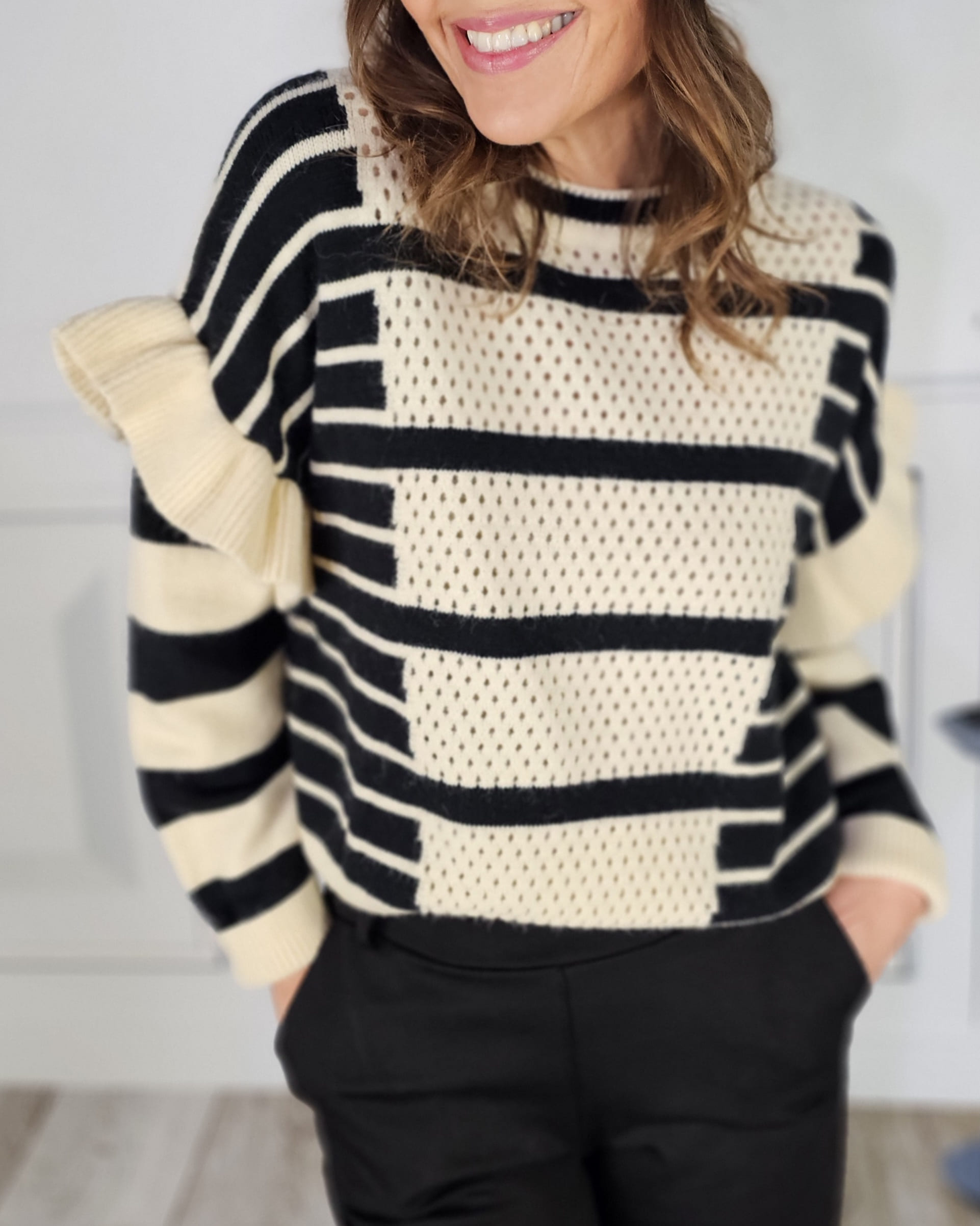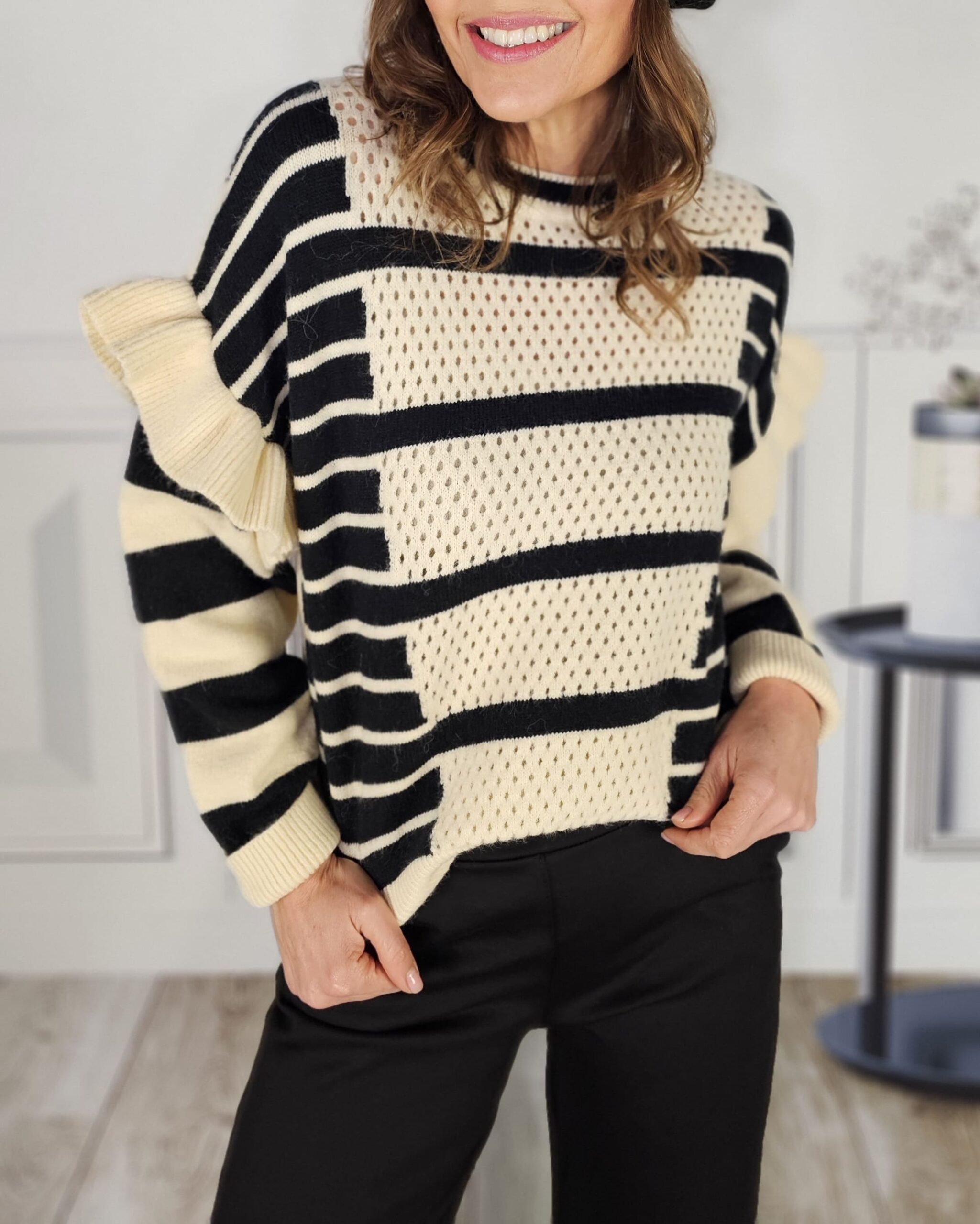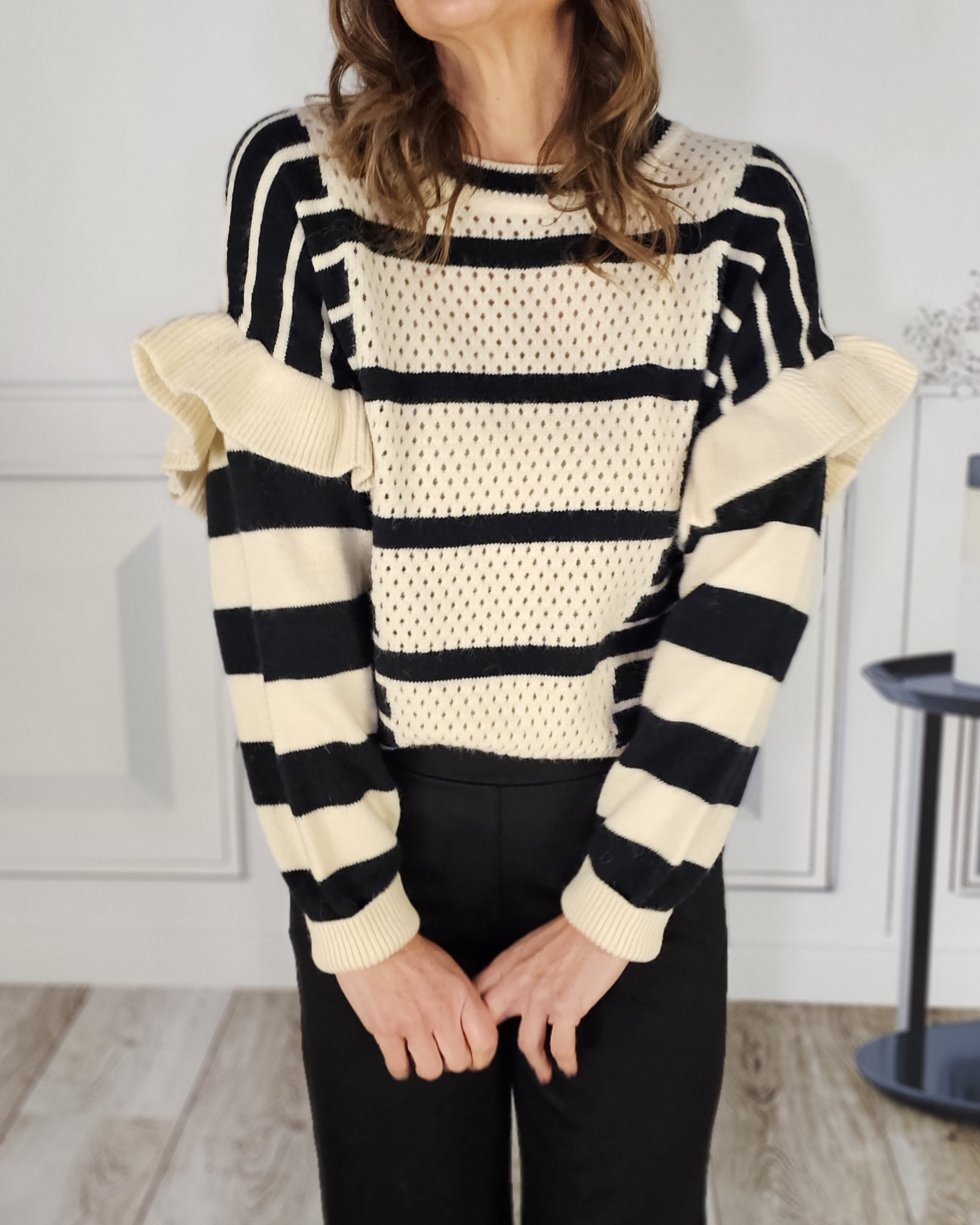 .Caladito en la parte delantera, mangas con un volante precioso, calentito siempre y cuello redondo perfecto.