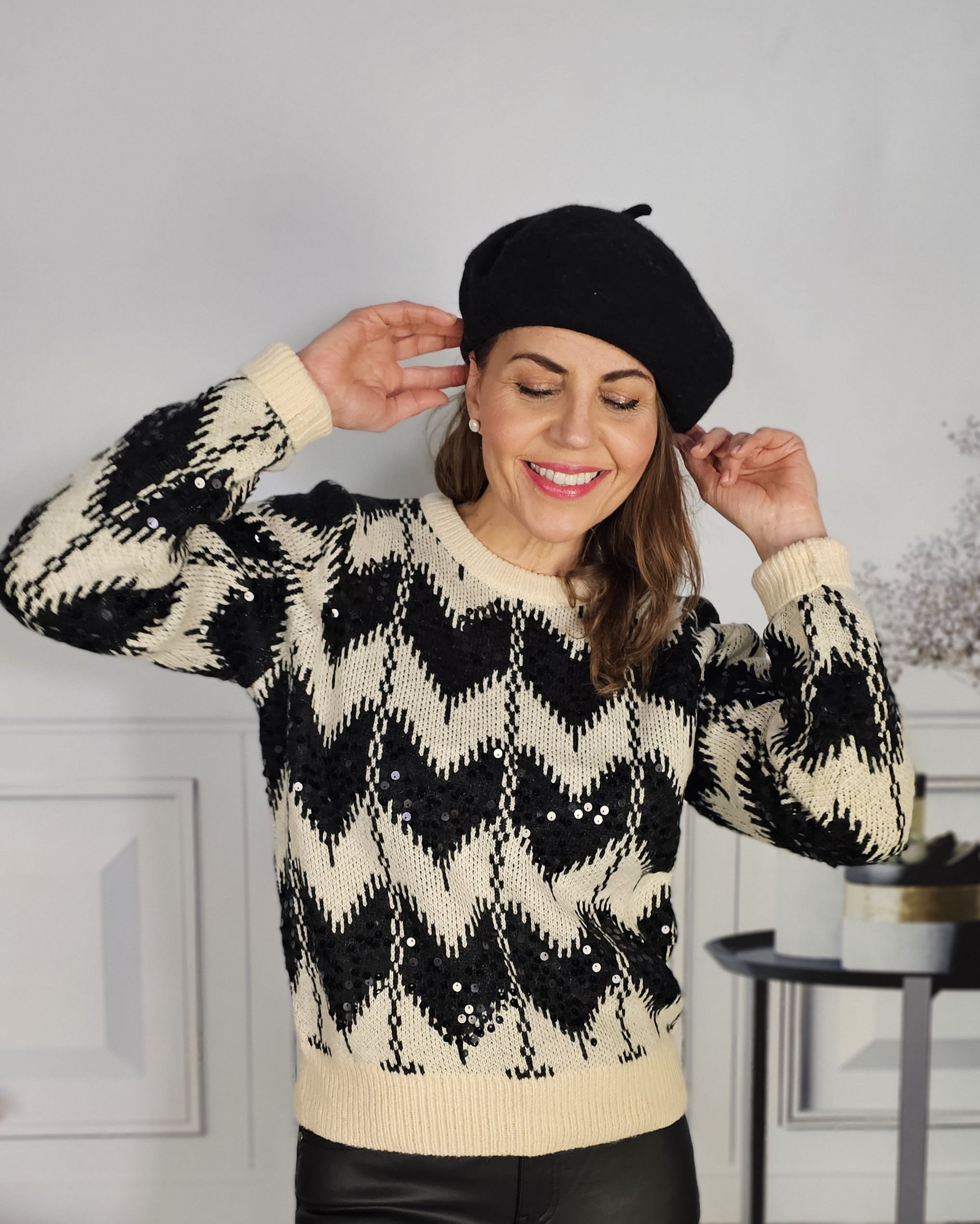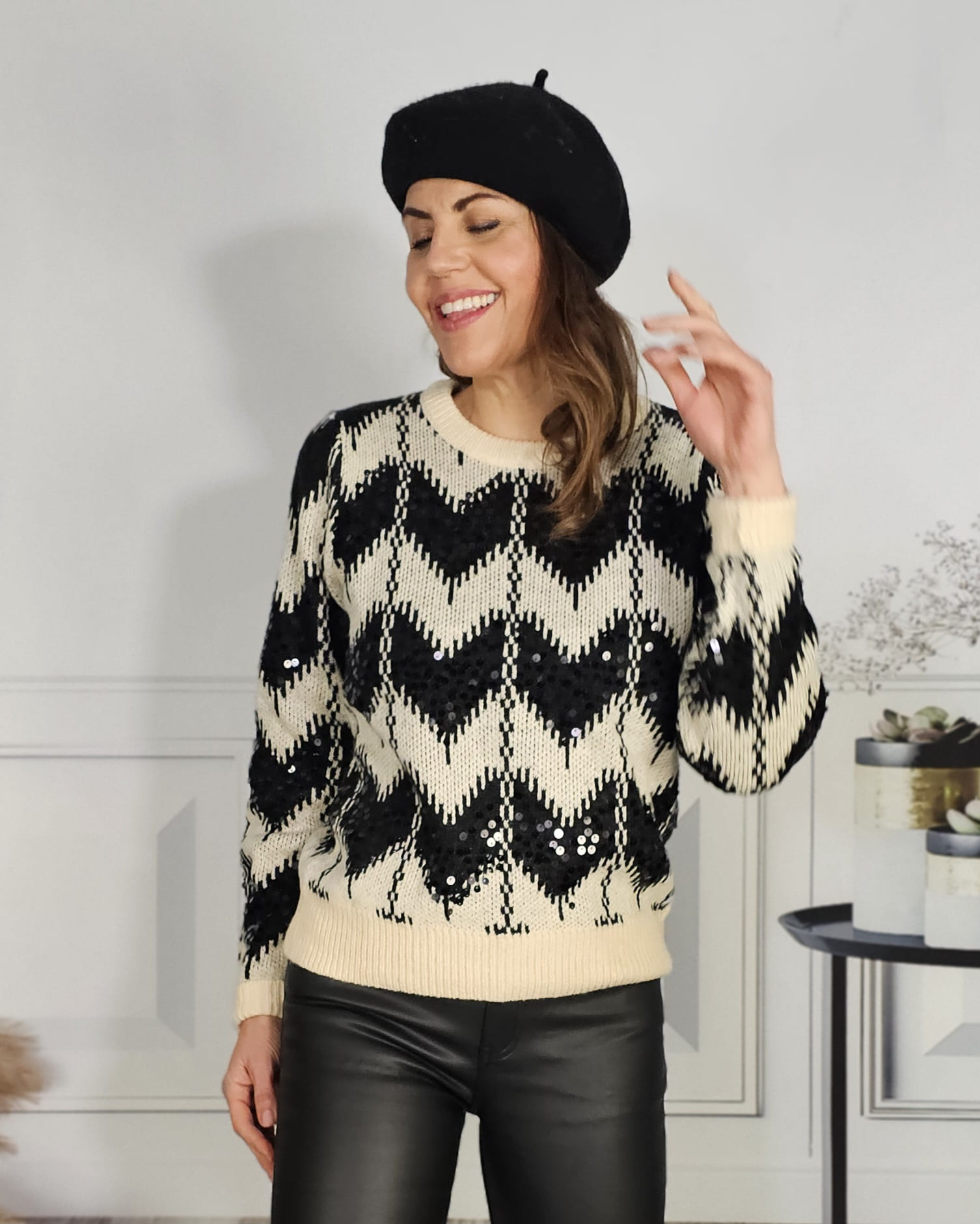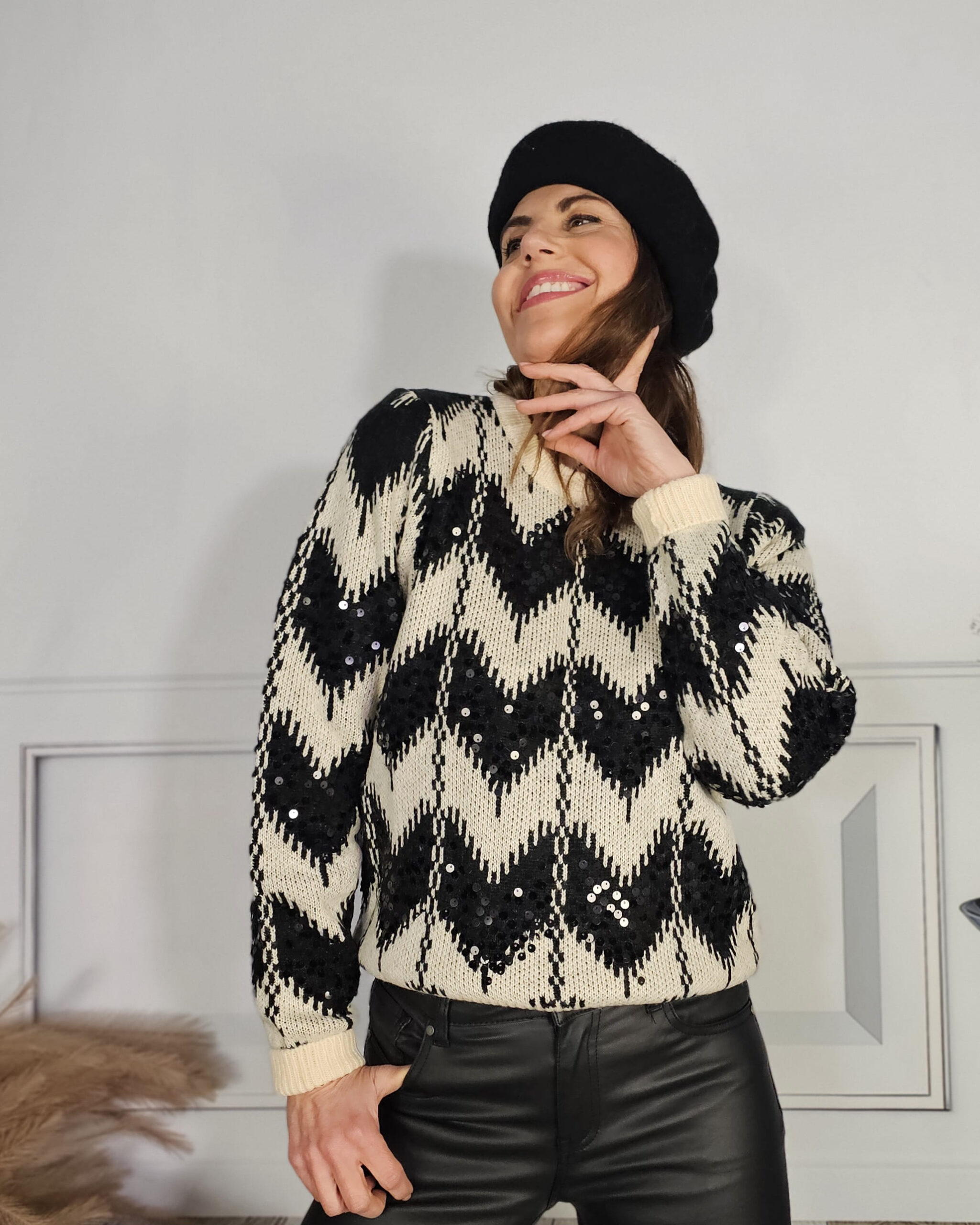 Un jersey que pide salir…que pide calle…zig zag con lentejuelitas.