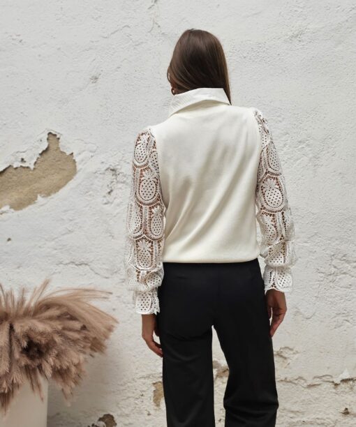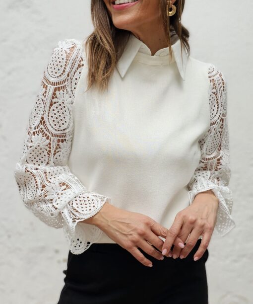 El cuello es camisero y es desmontable. Por lo que cuando lleves el jersey con el cuello de camisa parecerá que levas dos prendas en una.
