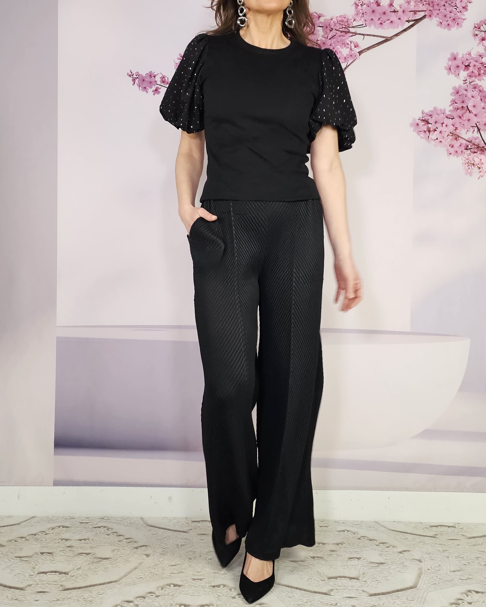 Ya viene con ese plisado tan tan bonito..no necesita plancha.