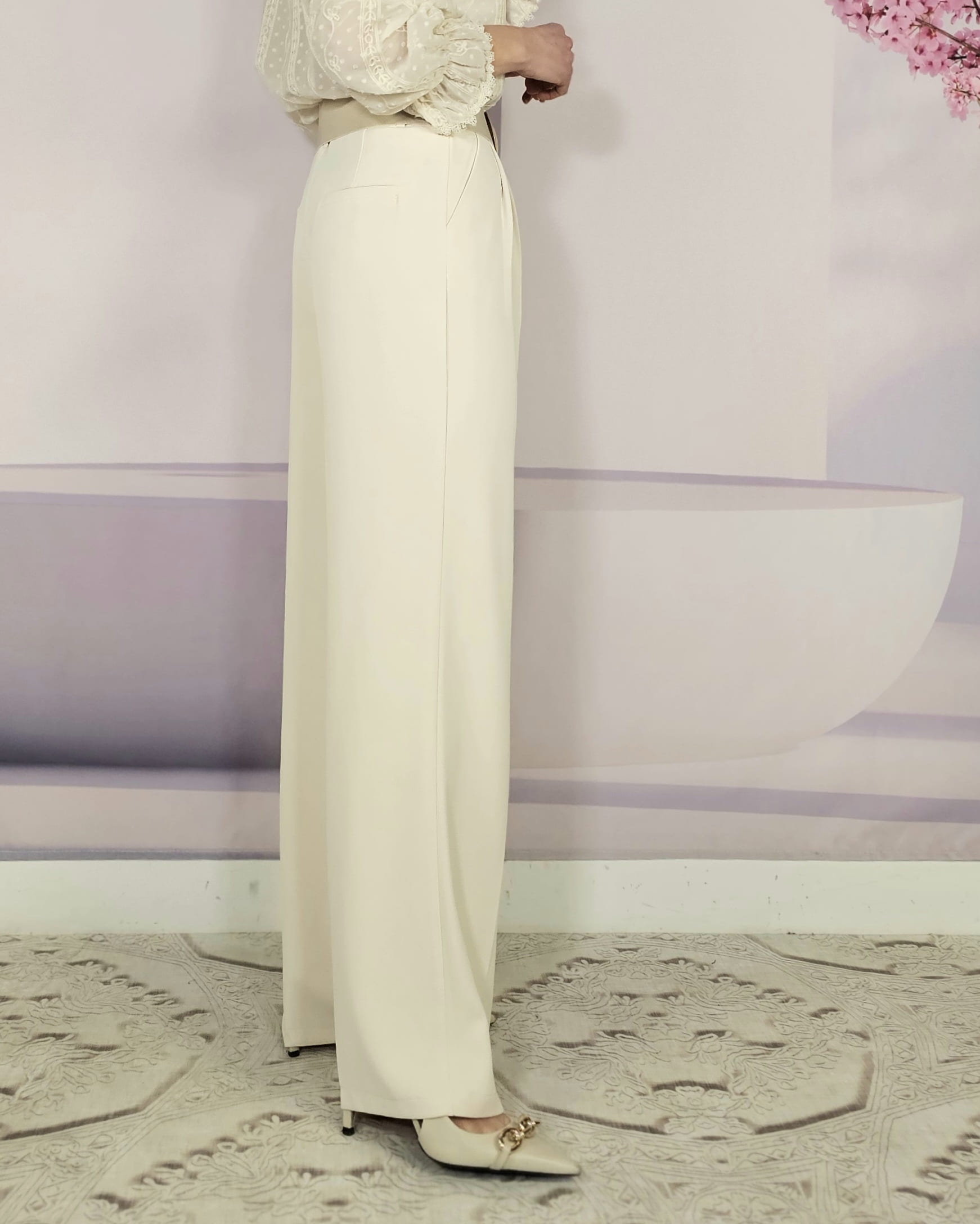 Pantalón de vestir fluido, con pinzas, travillas para ponerle cinturón a tu gusto…