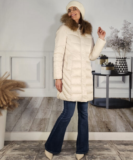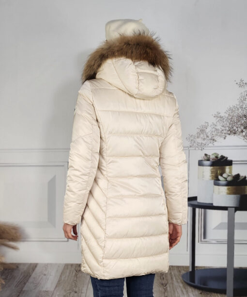 Gorro desmontable con pelo natural,Con logo de dos montañitas en la parte de arriba del brazo izquierdo.