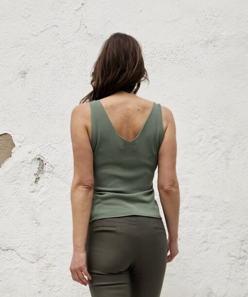 Nuestro Top Greta tiene doble pico (por delante y por detrás). De hilo fino y tacto suave…un top que se convierte en tu básico para tus looks de primavera/verano.