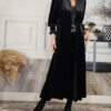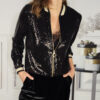 Americana cruzada con fono negro y dibujo de medias lunas preciosas.
