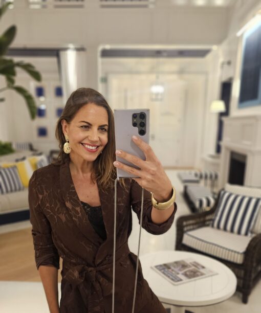 Una chaqueta abierta que se cierra a tu gusto con su cinturón a juego. Manga larga y hombros ligeramente abullonados. (La manga es recta). Hace un cruce en el pecho perfecto.