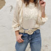 Crochet en ambos lados…pero un crochet cosido sobre el pantalón. Traquila que no queda al descubierto tus piernecitas, jeje.
