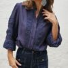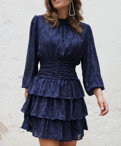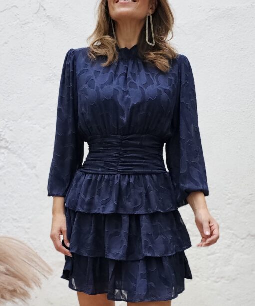 Este año viene en azul marino con un dibujo brocado precioso. Fruncido en la barriguita por lo que disimula esa zona.